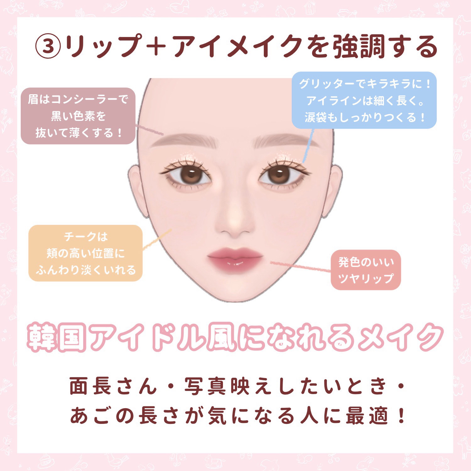面長が加速してしまう逆効果メイク&ヘアを14個ご紹介しました! せっかくメイクしたりヘアセットしたりしたのに逆に面長が加速してたりめちゃくちゃもったいない、、! これはぜひ気を付けてみてください、、、!