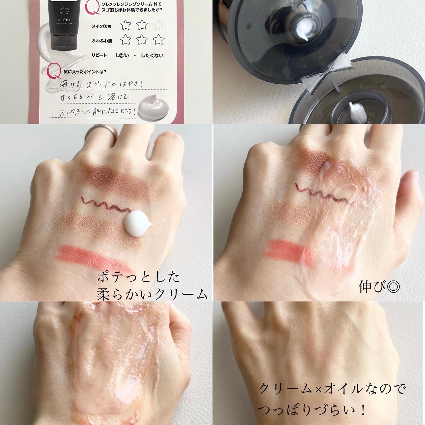 | クリームから軽いオイル状になって、メイクにとろける様になじんでいきます◎ | 詳細を見る | ||