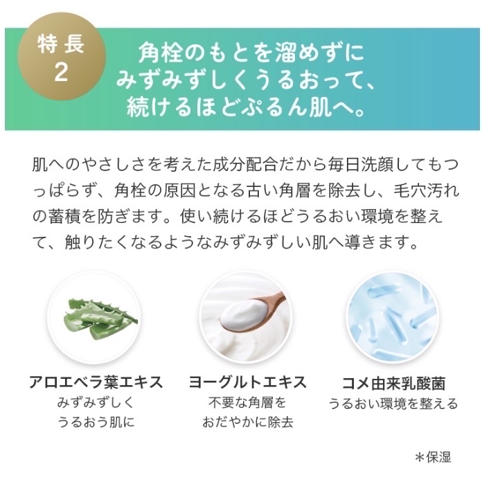 - 泡立て不要で、毎日簡単毛穴ケアできるジェル洗顔。厳選配合された3つのクレイが気になる毛穴汚れを吸着オフ。使い続けることで、毛穴汚れを落として蓄積を防ぎ、ヨーグルトエキス、コメ由来乳酸菌がうるおい環境を整えます。日々の洗顔で、触れたくなるようなみずみずしいつるすべ肌へ。肌状態に合わせて、パックやマッサージにも。 *ラベンダー油・ローズマリー葉油(整肌剤)がほのかに香ります。 ※2025年7月以降、商品パッケージ順次リニューアル。