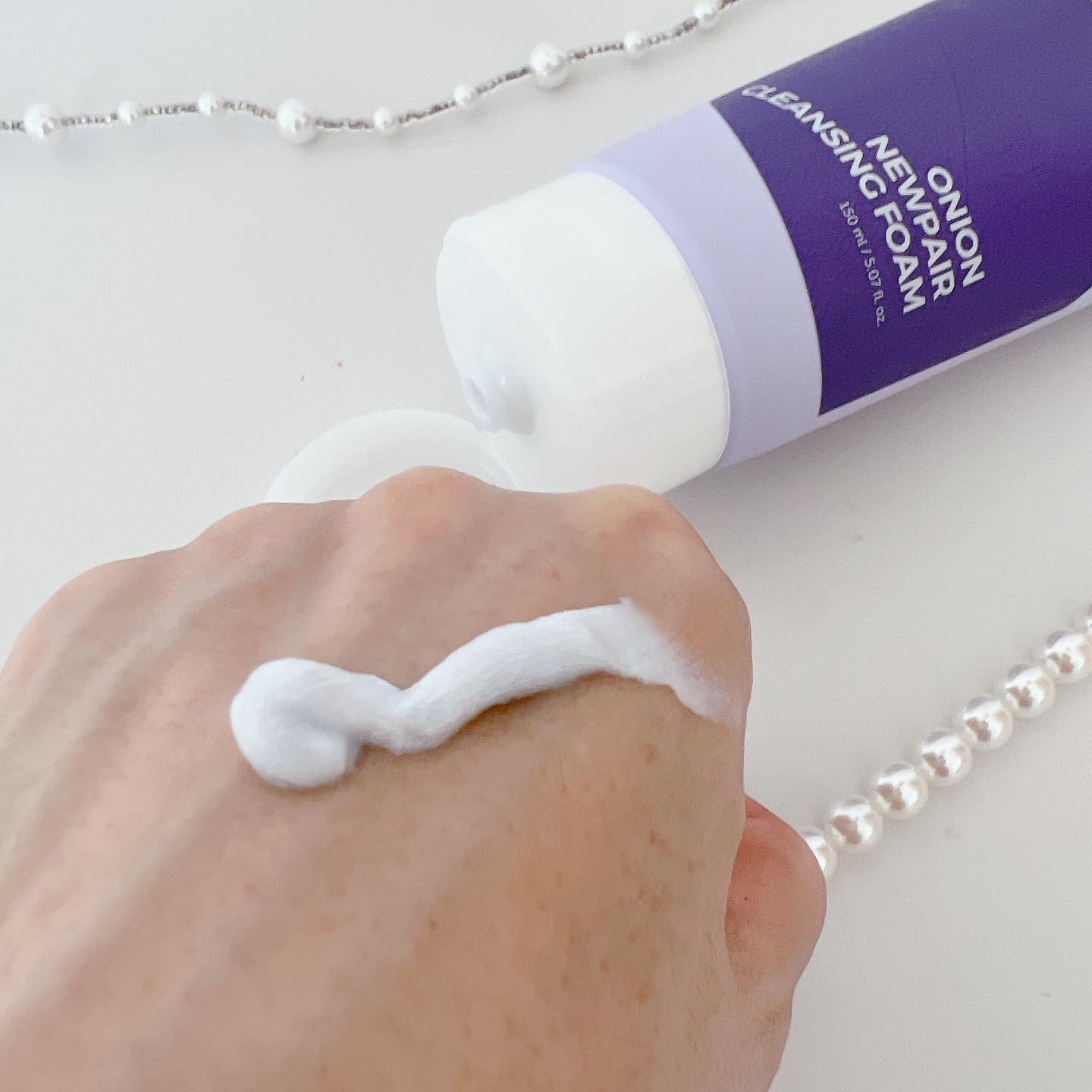 オニオンニューペアクリアパッド 7枚の層 7重パッド💫で厚みがあるので2枚にして使うのもよし、そのまま厚みのあるパッドでパックや拭き取りしてもよし◎ 250mlの大容量エッセンスが1箱に✨ ヒタヒタで使いやすい💜 ほんのり紫色の洗顔フォーム🧅💜 泡立ちよくて使いやすかった◎