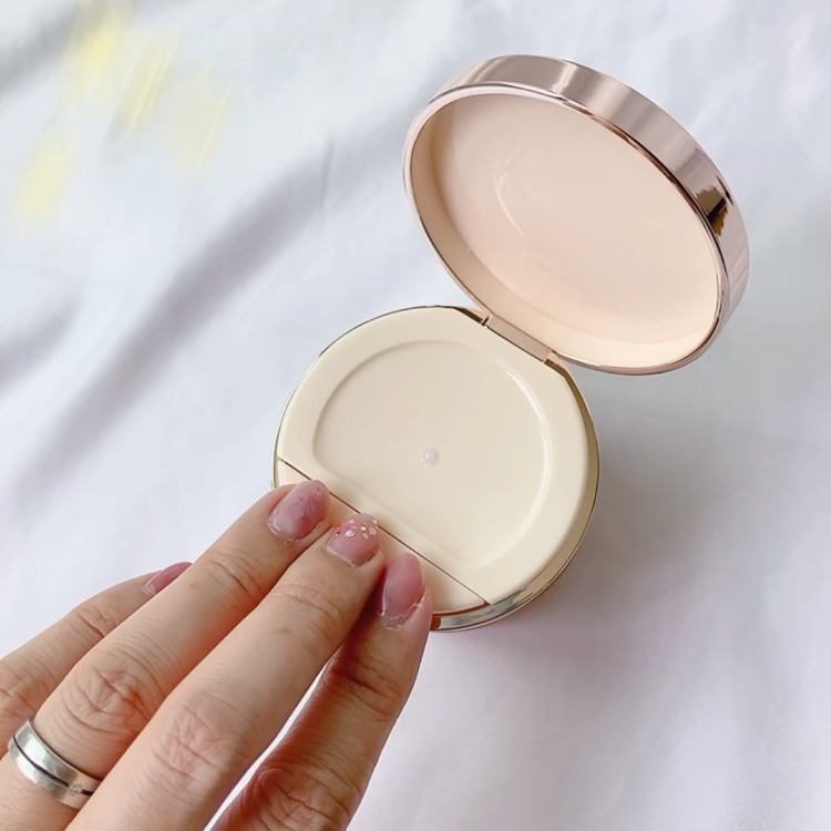 くすみや乾燥感を一掃してくれるようなプレストパウダー。青白いパウダーで、くすみを払ってくれる気がします♡ しっとりとした粉質だからお直しで使っても粉っぽくならずスンと肌に溶け込むんです。 立体感が出て、ツヤんと美肌フィルターをかけたみたいな仕上がりに。