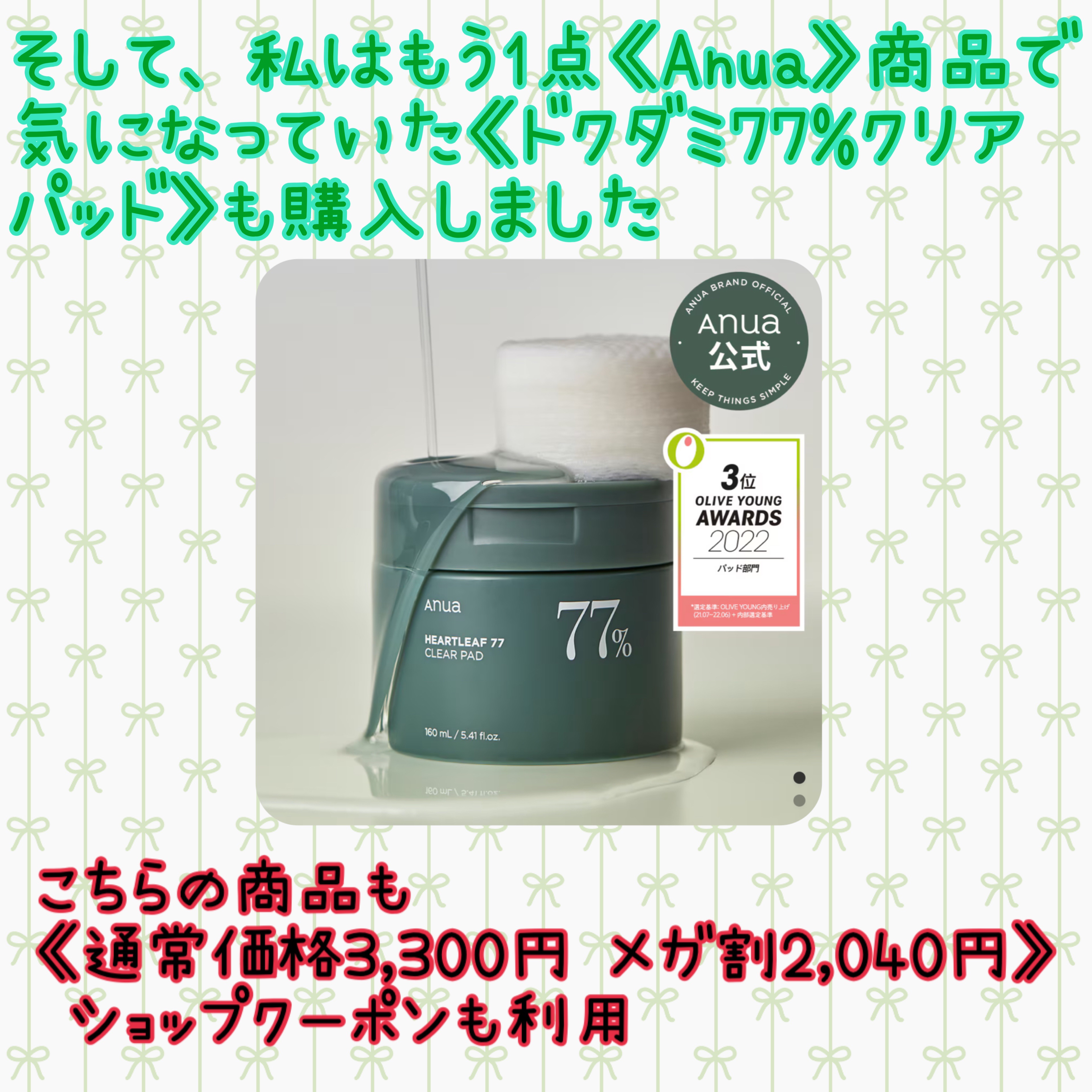 Anua ドクダミ77%クリアパッド | 3,300円 |