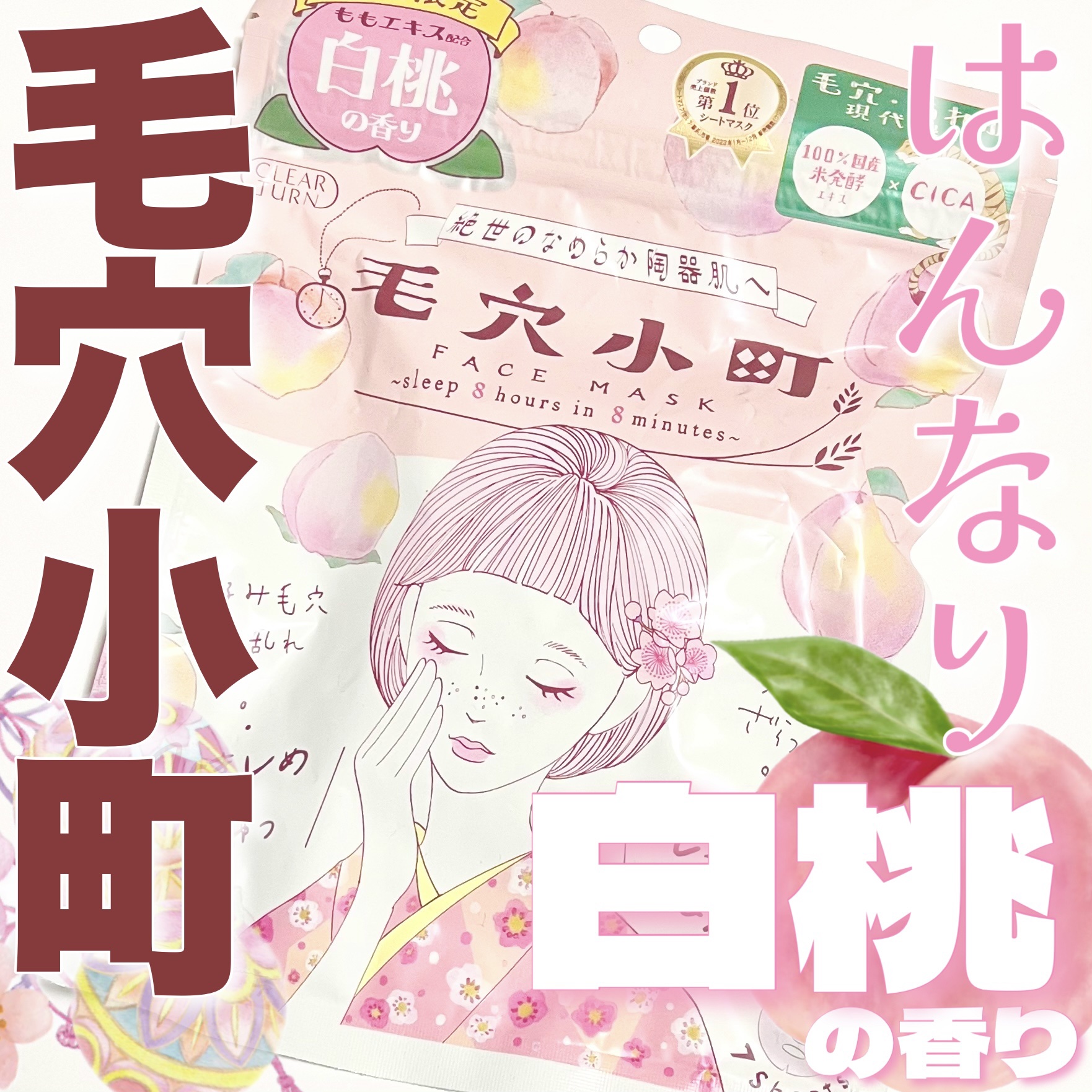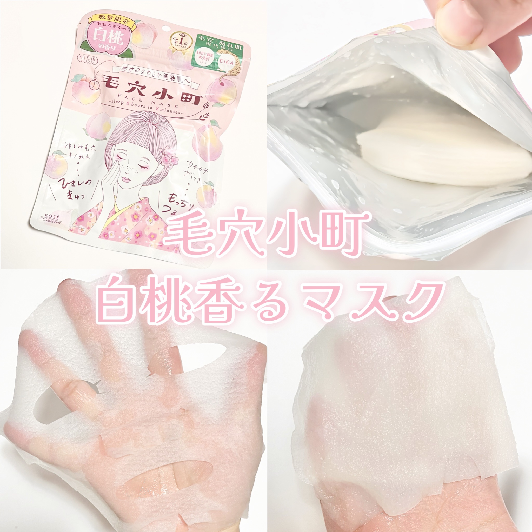 ✨クリアターン毛穴小町白桃香るマスク以前買っておいたものです🍑広げるのが下手すぎて、毎回どちらが貼る面か混乱します😂開けた瞬間からふわっと桃の香りがあって、果物の中で桃が一番好きな私としては最高に癒されました。美容液もたっぷりで、裏面にある時...