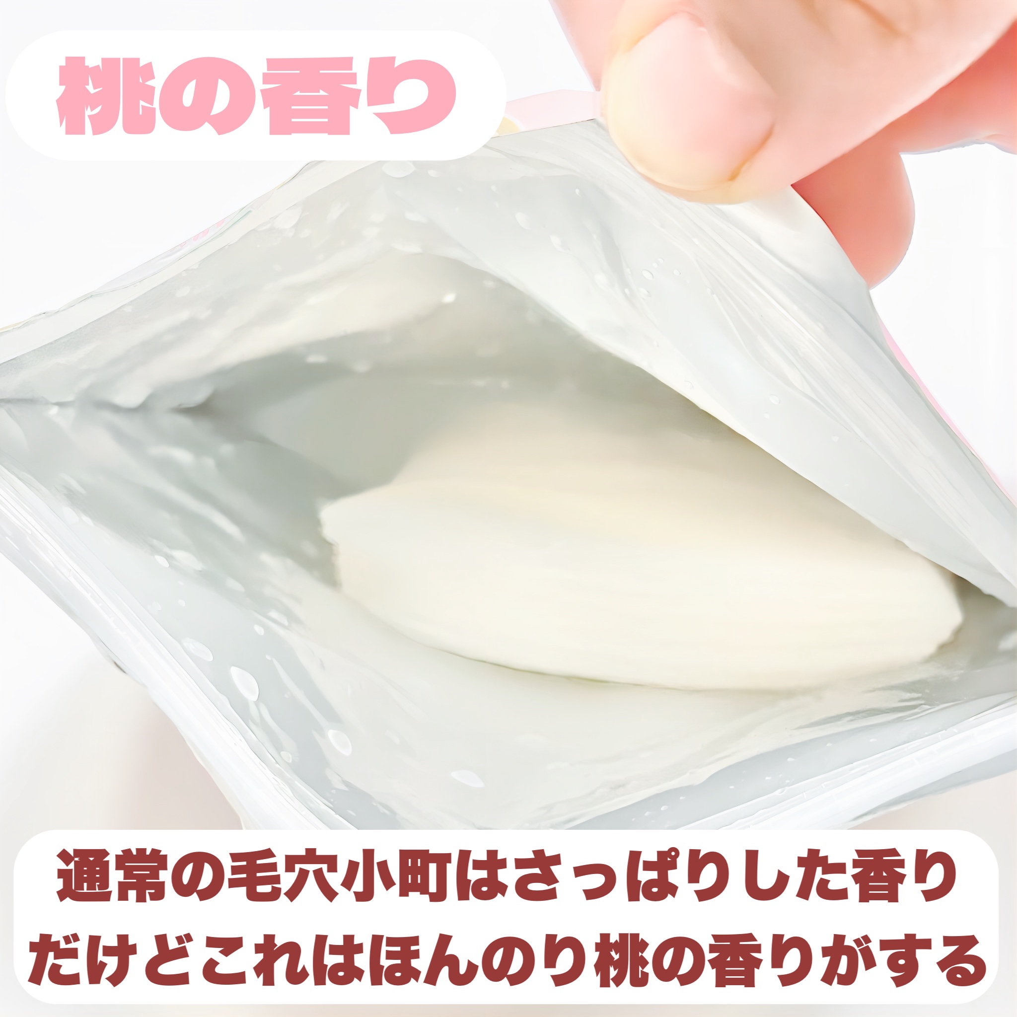 - <毛穴小町 白桃香るマスク> 水、BG、DPG、グリセリン、コメヌカエキス、コメ発酵液、ツボクサ葉エキス、ドクダミエキス、モモ種子エキス、EDTA-2Na、(アクリレーツ/アクリル酸アルキル(C10-30))クロスポリマー、イソステアリン酸PEG-50水添ヒマシ油、イソノナン酸イソトリデシル、カルボマー、トリエチルヘキサノイン、リンゴ酸、水酸化Na、フェノキシエタノール、香料
