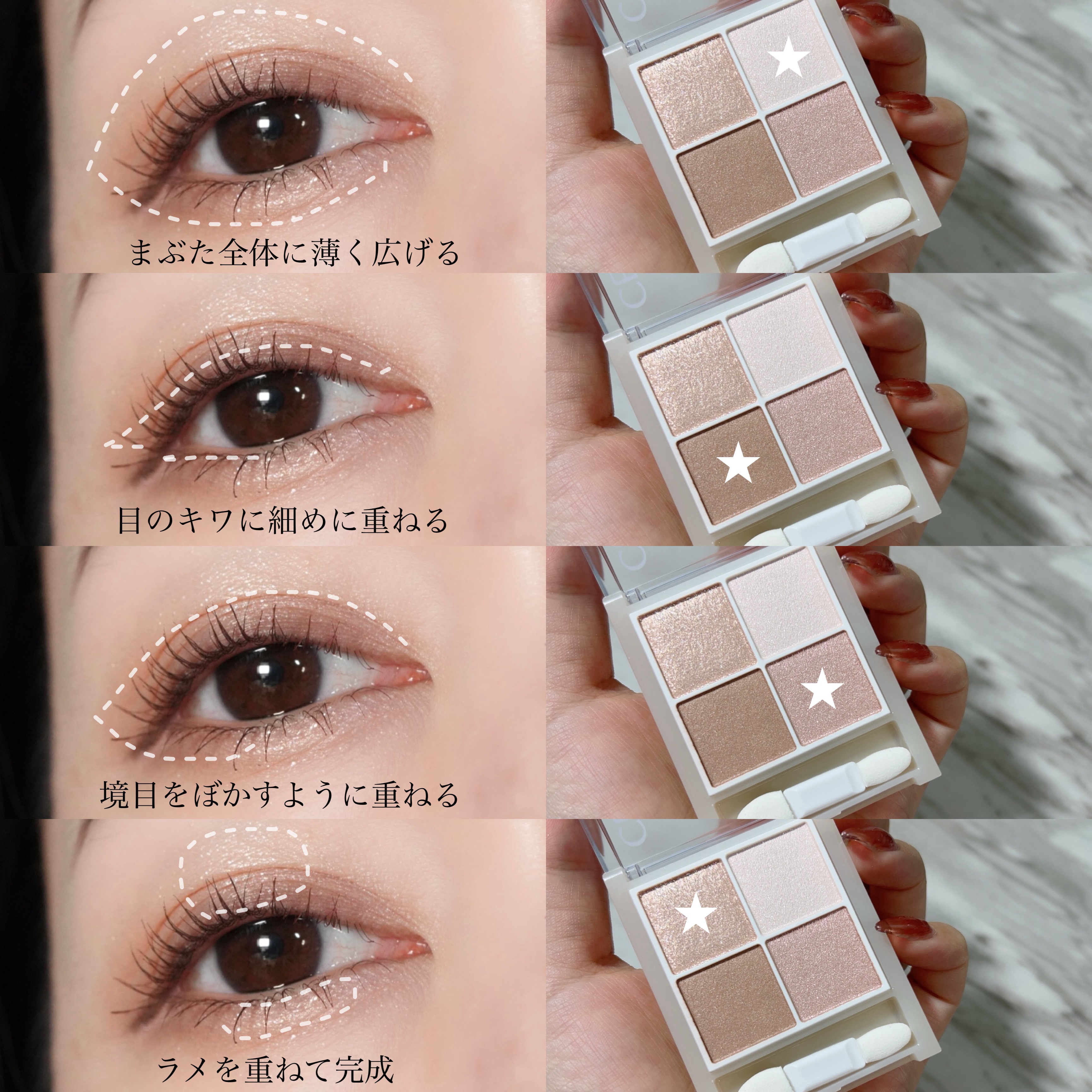 - 淡色グラデでソフトな陰影を作る4色アイシャドウ。