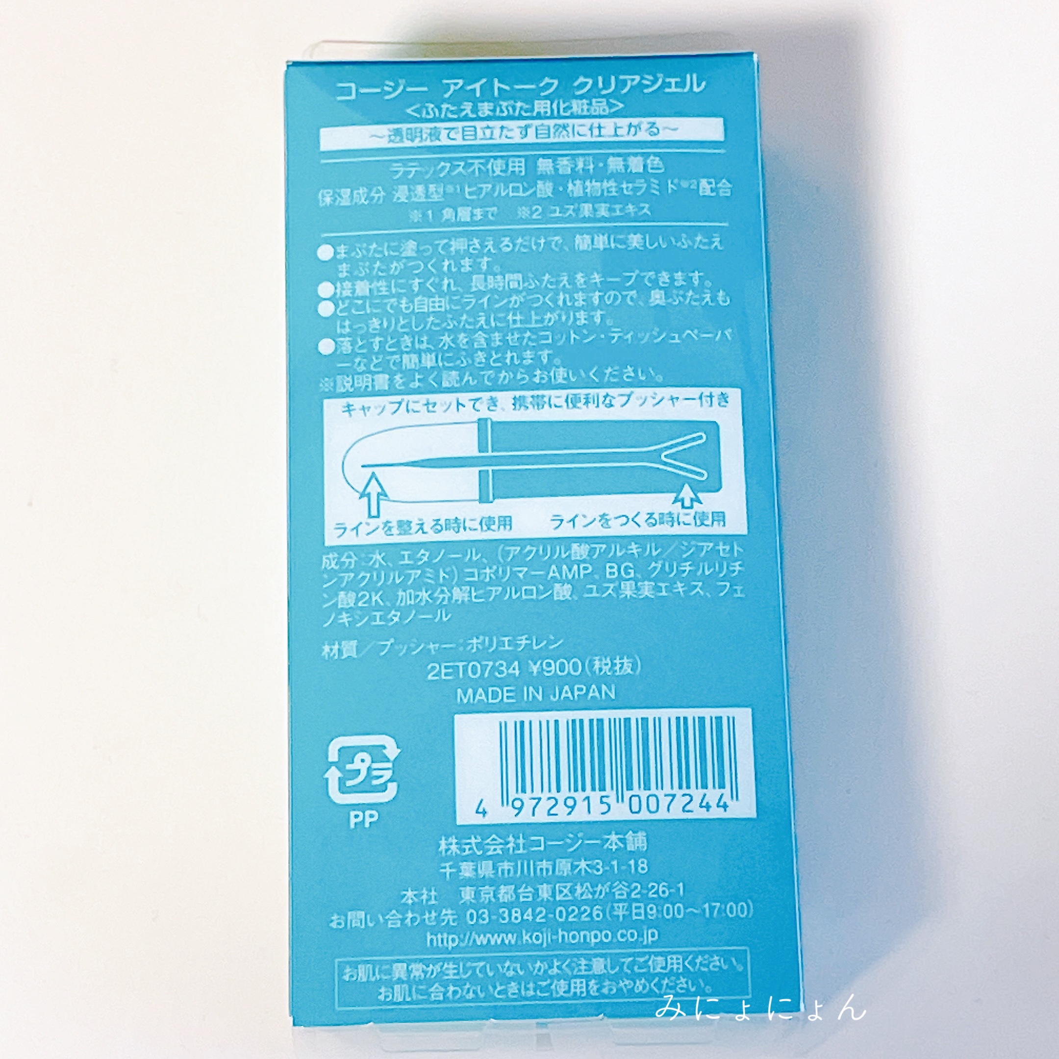- 液体タイプのふたえまぶた化粧品。まぶたに塗って、専用のプッシャーで押さえるだけで、簡単に美しいふたえがつくれます。 ●透明タイプ 液は透明で目立たず、低刺激臭タイプ。最初から液が透明なので、「崩れたら白くなった」という悩みを解消します。 ●自然なふたえ 仕上がりは自然で目立たず、違和感がありません。どこにでも自由にラインがつくれますので、奥ぶたえも、はっきりとしたふたえに仕上がります。 ●長時間キープ 接着性にすぐれ、長時間ふたえをキープできます。 ●便利な2WAYプッシャー付き ●簡単OFF 落とすときは、水を含ませたコットン・ティッシュペーパーなどで簡単にふき取ることができます。 ●保湿成分2種配合 浸透型※1ヒアルロン酸 植物性セラミド※2 ●無香料・無着色・ラテックスフリー ※1 角層まで ※2 ユズ果実エキス