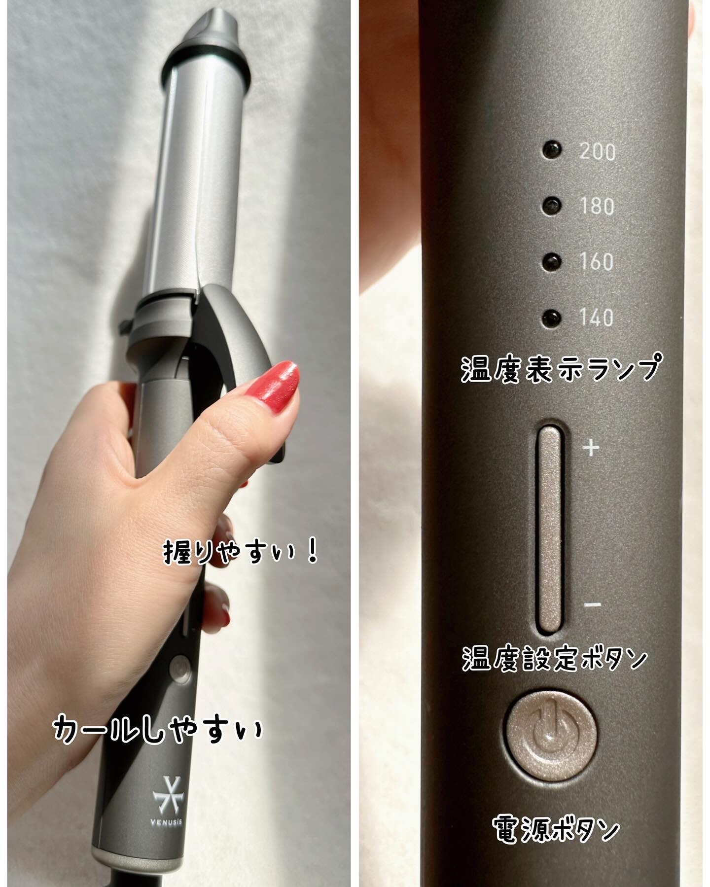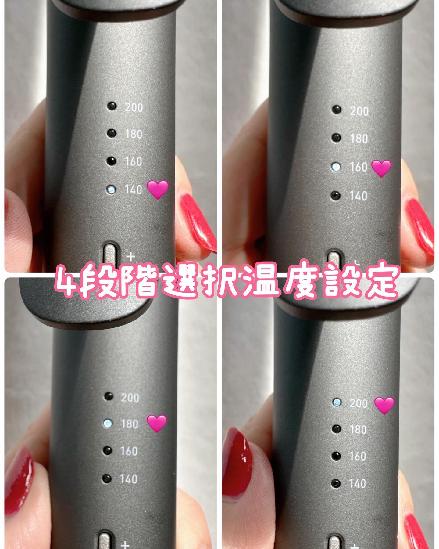 こちらはモイスティックプレートとというプレートを搭載しているので摩擦ダメージには良いとのこと◎ 温度は140℃〜20℃ずつ上がってMAXは220℃です! あまり温度は上げたくなかったですが180℃にしたら髪がまとまる時間が早くなりました◎ 耐熱カバーが付いていて持ち運びや熱を冷ます時間が無い時にも◎ 旅行にも持っていきましたがサイズも大きすぎ無いのが◎