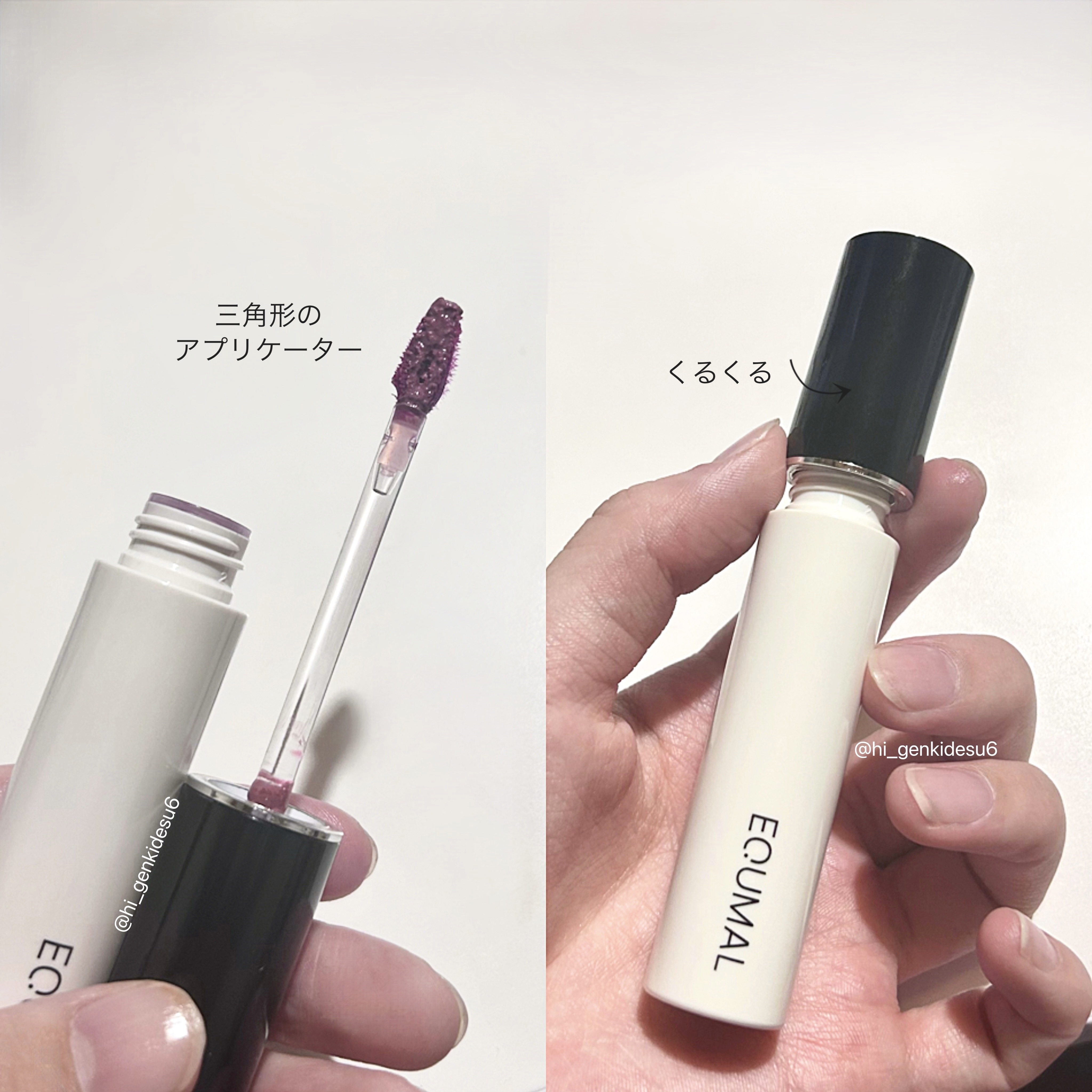 - 韓国のビューティー系インフルエンサー、LAMUQUE(ラミュク)さんが手掛けるブランド「EQUMAL(エクマル)」のティントリップ。 オイル膜が水分ティントを包み込み、みずみずしくツヤのある仕上がりをキープします。 時間が経過するほど透明感が増し、ツヤっとした質感が引き立ちます! ✓40%の水分量とローズリップオイルを配合 ✓ グラッシーグロウフィニッシュ:美しい発色&立体的&透明感溢れる仕上がり ✓ 革新的な使い心地:唯一無二の『シグネチャーリップスプレッダー』 →カラーを均一に密着させた後にグレーザーで唇の外側をぼかすと簡単にグラデーションリップ出来上がり! ✓ ベタつかずに時間が経つとともに浮かんでくるオイルの艶感!潤いとツヤを一日中キープ!