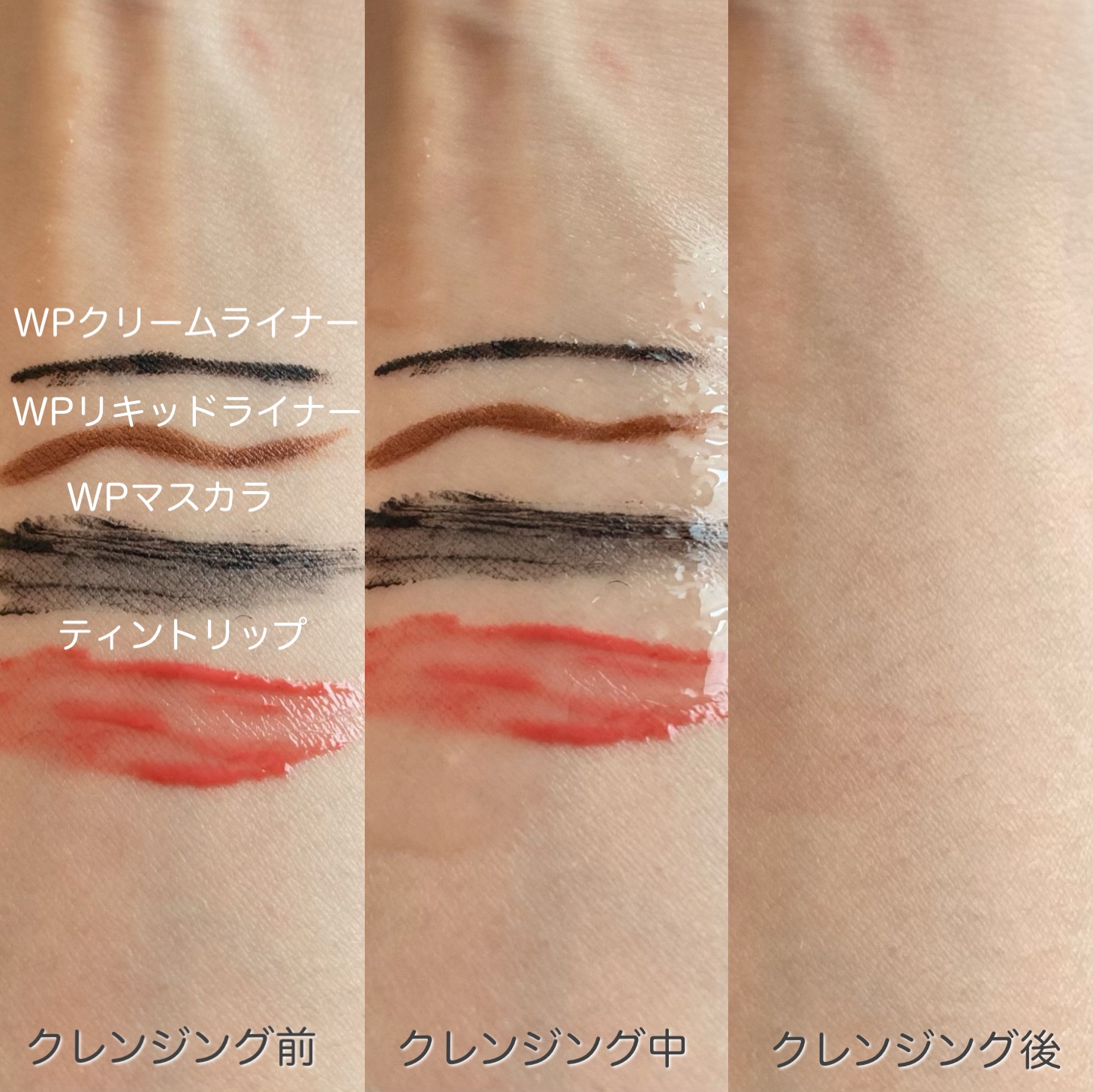 つけるだけでメイク瞬浮き🫧 ウォータープルーフマスカラ、毛穴メイクもしっかりオフしてくれるオイルクレンジング。 洗い上がりはつっぱりにくく、乾燥を感じにくい洗い上がり🤍 ビオレのこのThe クレンズオイルメイク落としはオイルタイプのクレンジングですが、ベタベタする感じは全くなくどちらかというとサラサラのテクスチャー🫧 写真四枚目で実際にウォータープルーフのアイテムを落としてみましたが、今まで使ってきたクレンジングの中ではダントツに落としやすかったです..!!(私個人の感想、ポイントメイクリムーバーを除いた場合です)