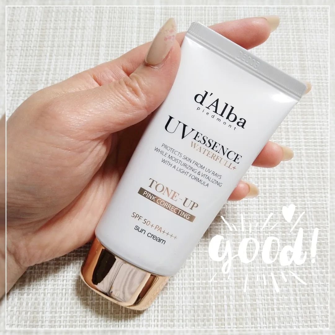 白桃色トーンアップで透けツヤ肌へ導いてくれるという UVカットx化粧下地✨ テクスチャーもなめらかでのびもいいし 重ね塗りしてもべたつかないですし 上品なツヤ肌に見せてくれるのでとても気に入っています😉✨ このウォータフルトーンアップサンクリームのみで 使うと石鹸洗顔でオフすることができるところも 魅力のひとつになっています✨
