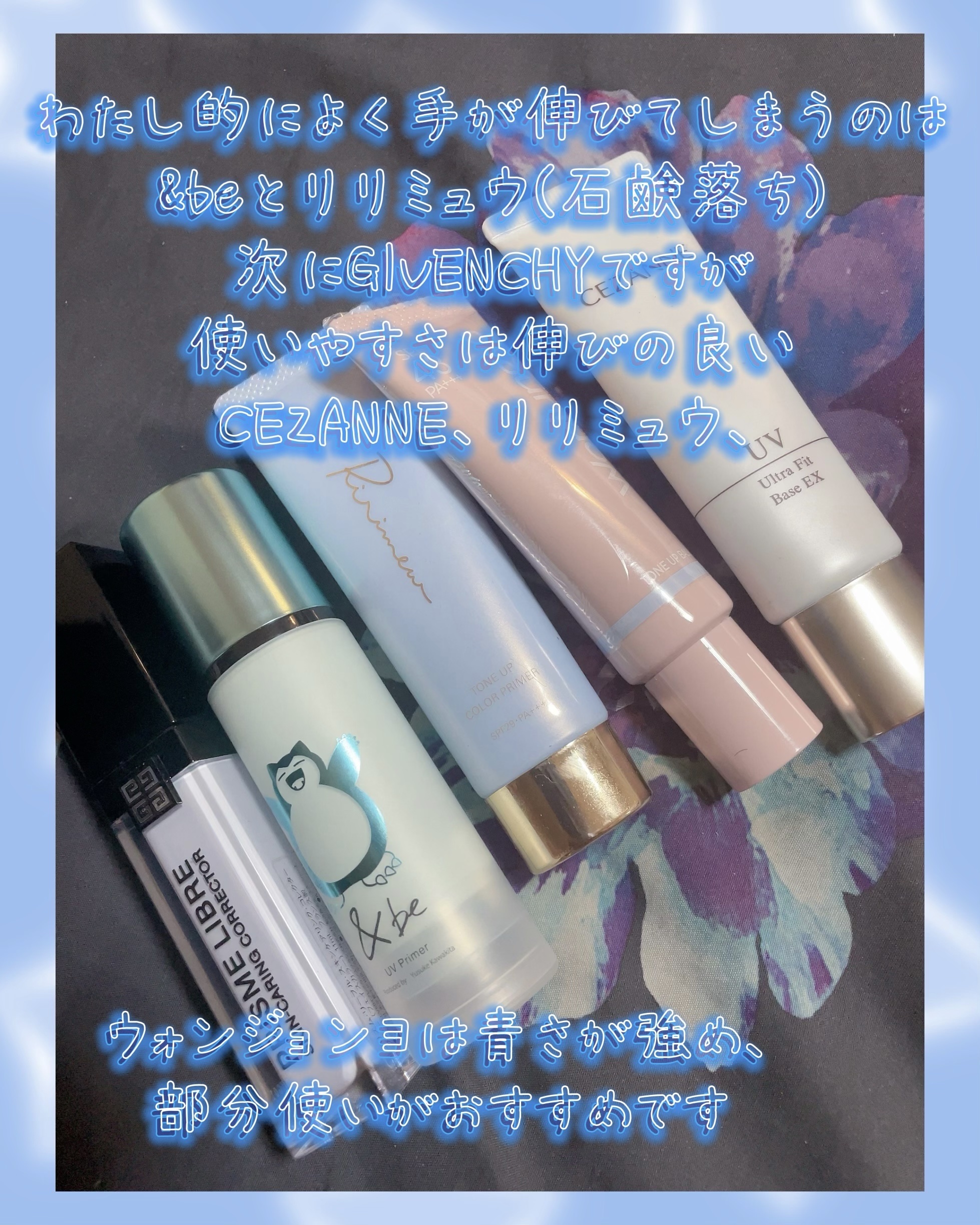 すごーい🩵🩵🩵 圧巻の水色下地全員集合!!! それぞれの良さを紹介してくださっていて分かりやすいです🥹✨✨✨ GIVENCHYいつか使ってみたいです🫶💕💕💕