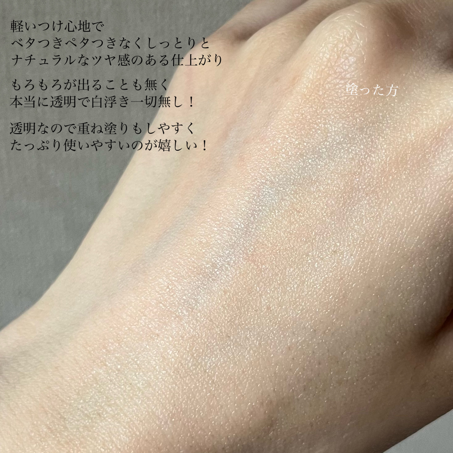 透明タイプの日焼けどめ 白浮きせずすっと馴染むカラーが使いやすいし 軽やかな付け心地なところもお気に入りです 日焼けどめのベタつが苦手な人にはぜひ手にとってもらいたい