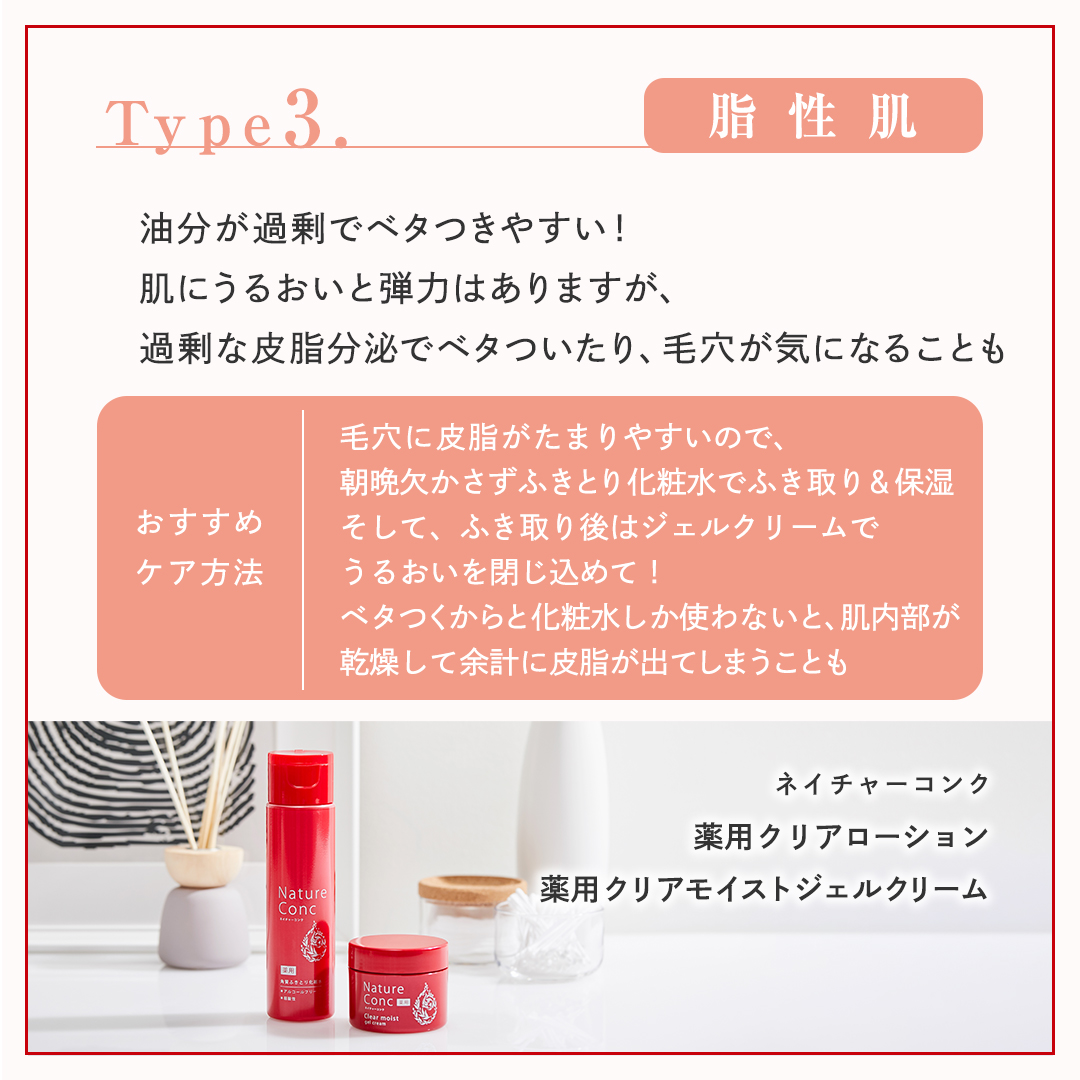 \肌タイプ診断でわかる!/自分に合ったスキンケア方法お肌の悩みは人それぞれ異なるもの…まずはチャートで肌タイプを診断▷#乾燥肌水分・油分共に少なくカサつきがちなため年間を通して朝・晩しっかり保湿することが大切!#脂性肌水分も油分も多くテカリや...