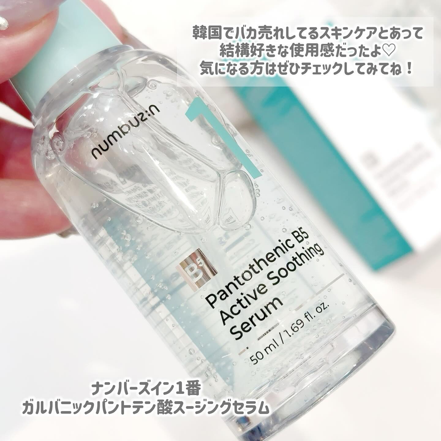 水分たっぷりの1番セラム💧 ナンバーズイン 1番 ガルバニックパントテン酸*1スージングセラム ほんの気持ちのとろみとサラッと水分たっぷりのみずみずしい使用感で油分感やベタつきも少なく、朝晩使いやすいさっぱりしっとり感🥰 ナイアシンアミド*2が4%配合で、透明感*3のある肌へ😳 皮脂ケアしつつ水分チャージしてくれるから、脂性肌寄りの混合肌(インナードライ)の悩みにアプローチしてくれるアイテムで私にぴったり🙌🏻
