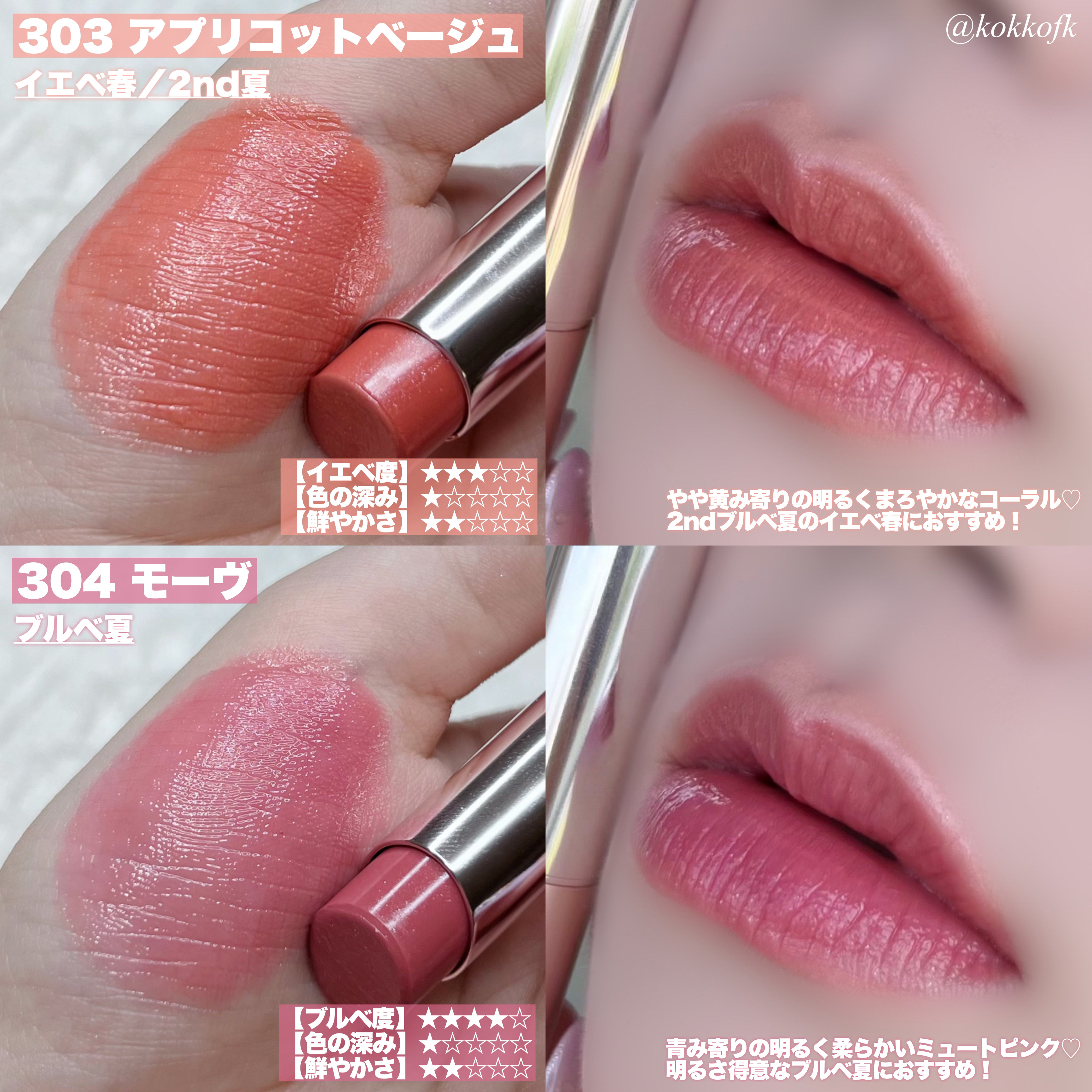 このバームはワセリンのようなとにかくうるうるの透明ツヤ感で、唇に負担なく薄づきの発色です💓 やや黄みの柔らかいヌードベージュ 明るさが得意なイエベ春におすすめ! 明るく澄んだ青みピンク 明るさが得意なブルベにおすすめ! やや黄みの澄んだコーラルレッド 2ndブルベのイエベ春におすすめ! 鮮やかで澄んだ青みレッド 鮮やかさが得意なブルベにおすすめ! 柔らかいくすみベージュブラウン 柔らかい色が得意なイエベにおすすめ! やや青みの柔らかいくすみレッド 柔らかい色が得意なブルベ夏に! しっかり青みのモーブピンク 1st2ndブルベにおすすめ!