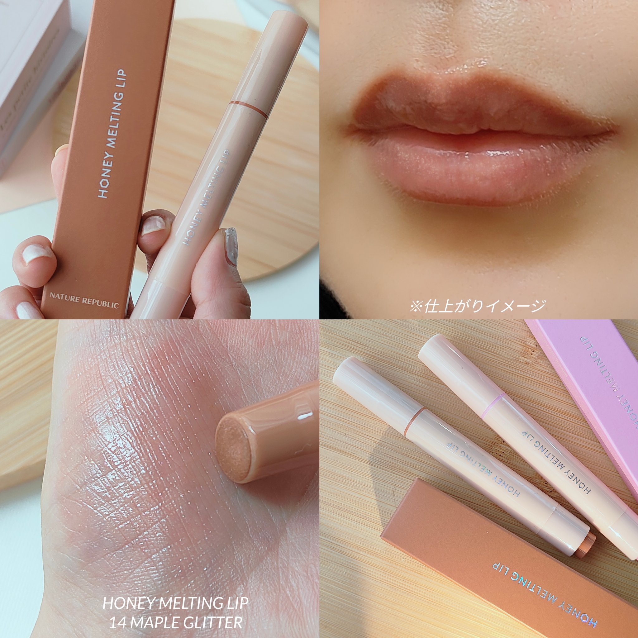 ぎらんぎらんグリッターリップ💄💗ネイチャーリパブリックハニーメルティングリップ13オーロラグリッター14メープルグリッター¥1,320オーロラグリッターはピンク×ブルー×パープルのパールメープルグリッターはゴールド×レッド×ブラウンのパールギ...