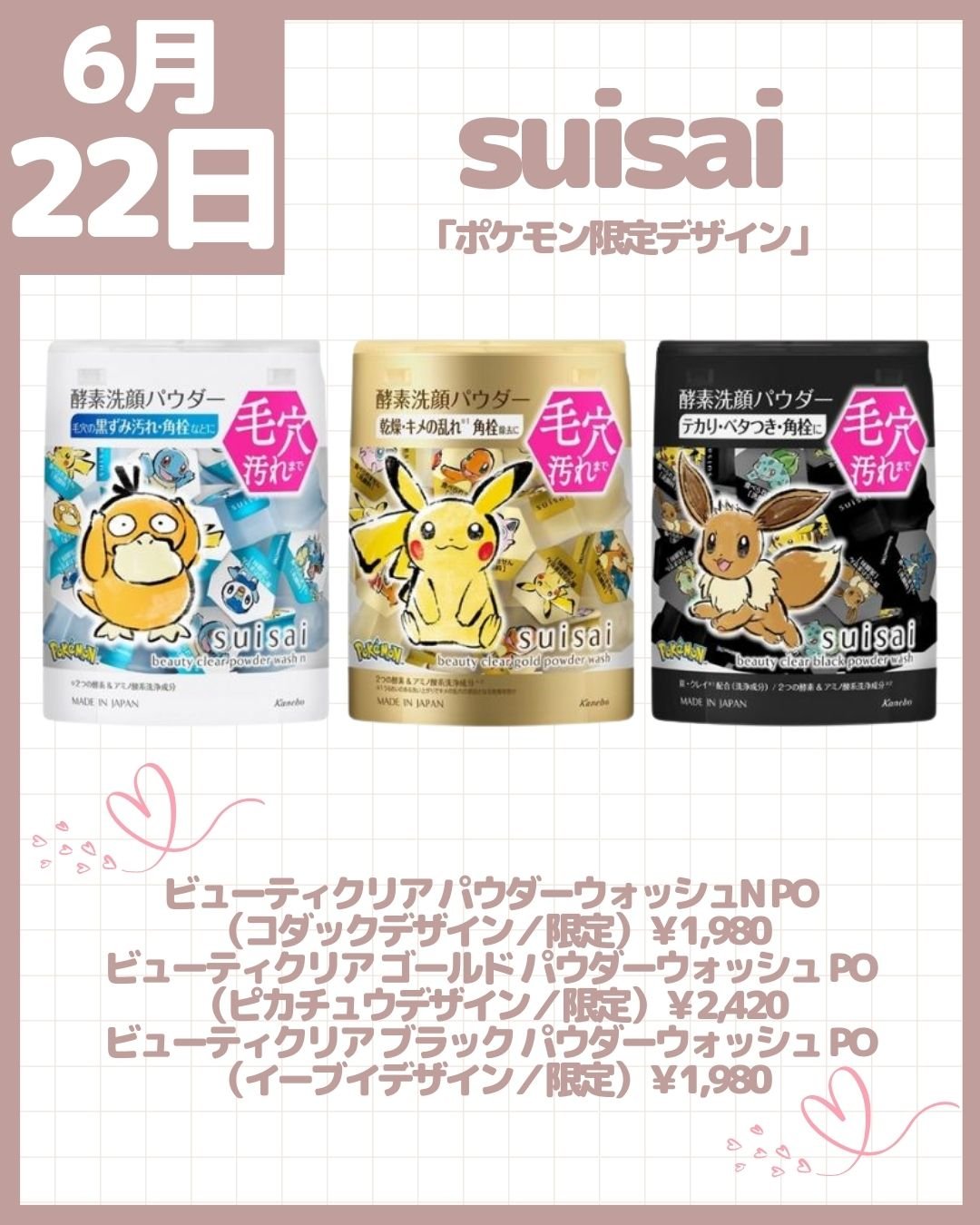 🥂𓍼新作コスメ情報.ᐟ.ᐟ.6月21日(土)に発売されるスイサイビューティクリアシリーズ🫧𓍼パウダーウォッシュN𓍼ブラックパウダーウォッシュ𓍼ゴールドパウダーウォッシュ𓍼ピーリングパウダーウォッシュ𓍼ピンクパウダーウォッシュ𓍼グリーンパウダー...