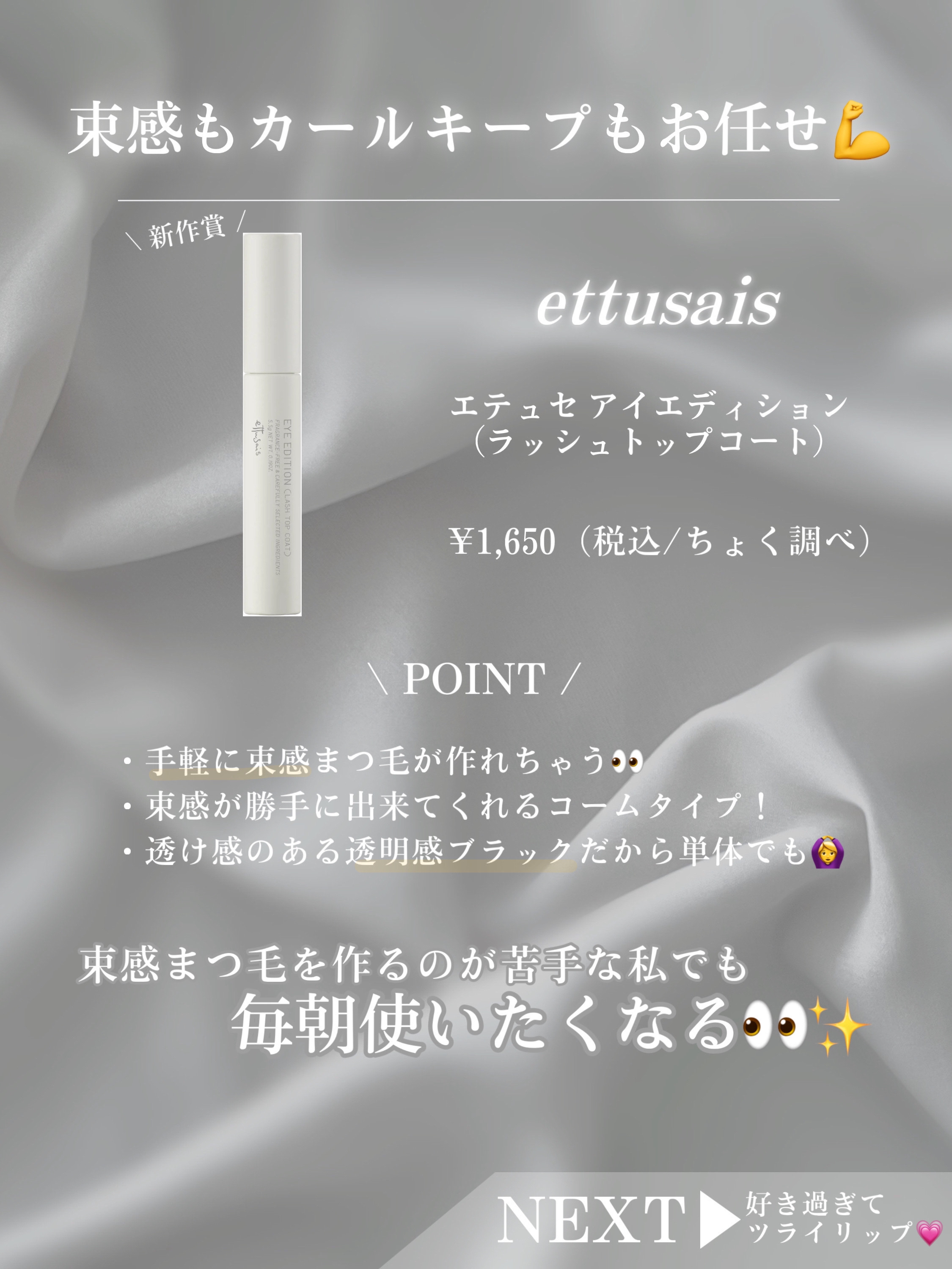 | マスカラトップコートランキング第8位 | 自然な束感できてめっちゃいい〜🥹🤍 縦に持ってサーっと撫でるだけでめっちゃ簡単。 | 詳細を見る | |