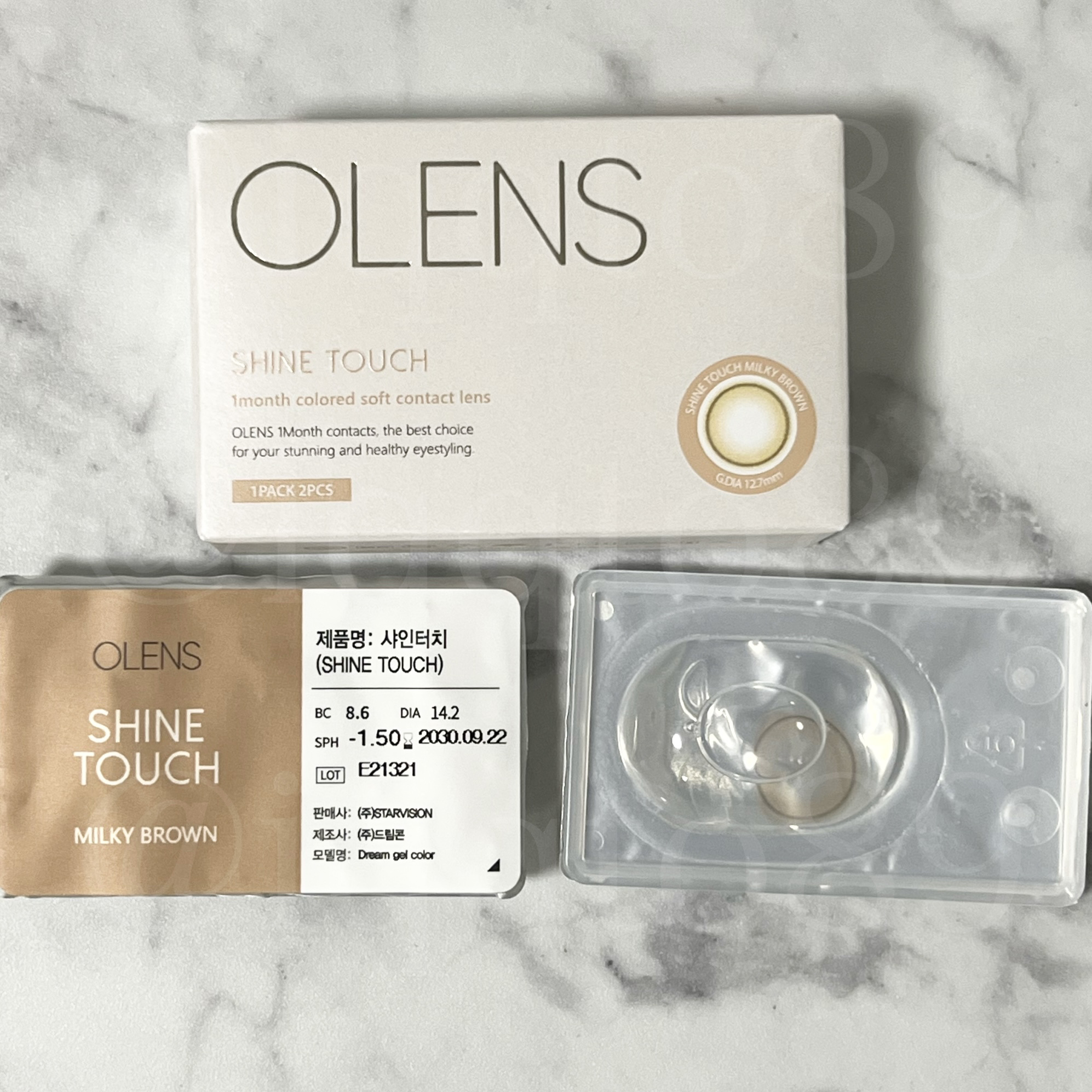 シャインタッチはカラーもフチもふわっとした印象 カラーはミルキーでミルクチョコレートのようなイメージです🍫 仕上がりも明るく優しいように感じました◎ ビビリングは少しピンク味のあるカラー🎀 チョコカラーで可愛らしい印象です🫧 ぼかしフチになっていて色素薄い系に仕上がります どちらもナチュラルなメイクに合わせやすいデザインになっているかなと 思います🧸💭