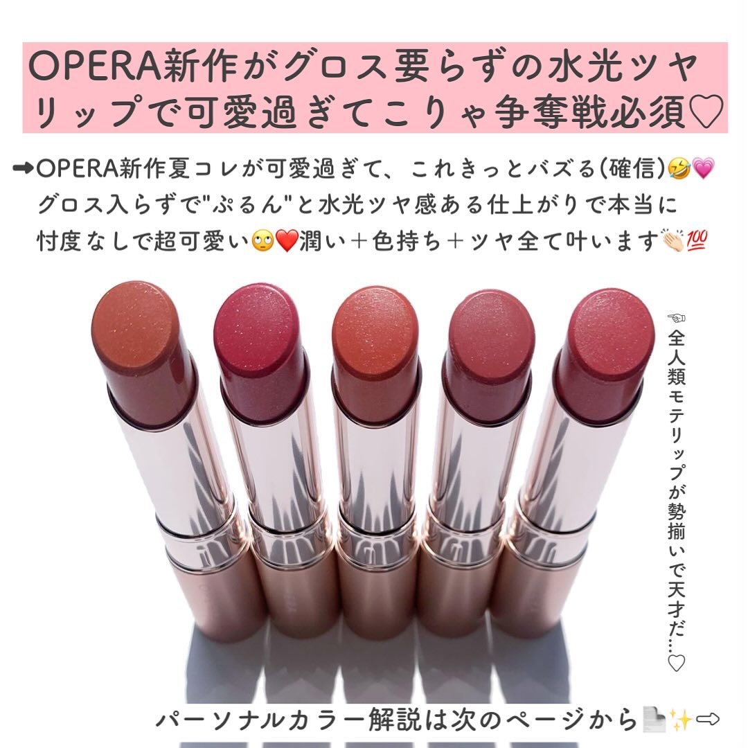 OPERAから新しく発売された秋の新色、限定色🍂「きらめく透け感紅茶ティント」キャッチフレーズ通りの肌に馴染む透け感とチラチラと光るラメが可愛い🫰どれも秋ぴったりのカラーで唇から洒落感が滲み出るお色になってる🫶#PR#オペラ#opera#リッ...