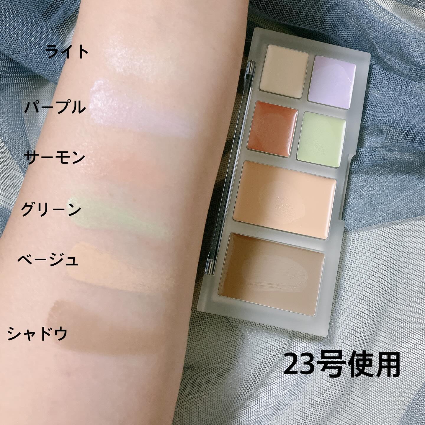 ヒーアス独自のスキンプリージングテクスチャーで軽く肌が呼吸する様な使用感 特に良かったのがクマや青みカバーするオレンジカラー🧡23号パレットのサーモンは、今までで1番綺麗にくまカバーできました✨ パレット一つでマルチな肌悩みに対応できる心強いコンシーラーです✨