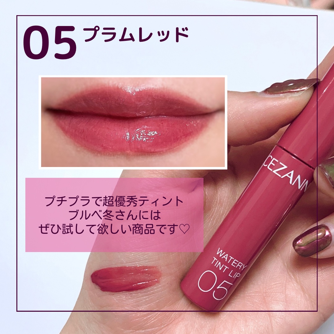 - ツヤ×色×潤いをキープする、セザンヌの新濡れツヤリップ みずみずしい濡れツヤ感ある仕上がりで、発色とツヤが長続きするティントリップです。ティントの発色を透明のベールで覆うリップコートのような処方で、ツヤ感と色をキープします。さらに、唇表面のべたつきは少なく、しっとり潤うオイルinウォーター処方を採用しています。