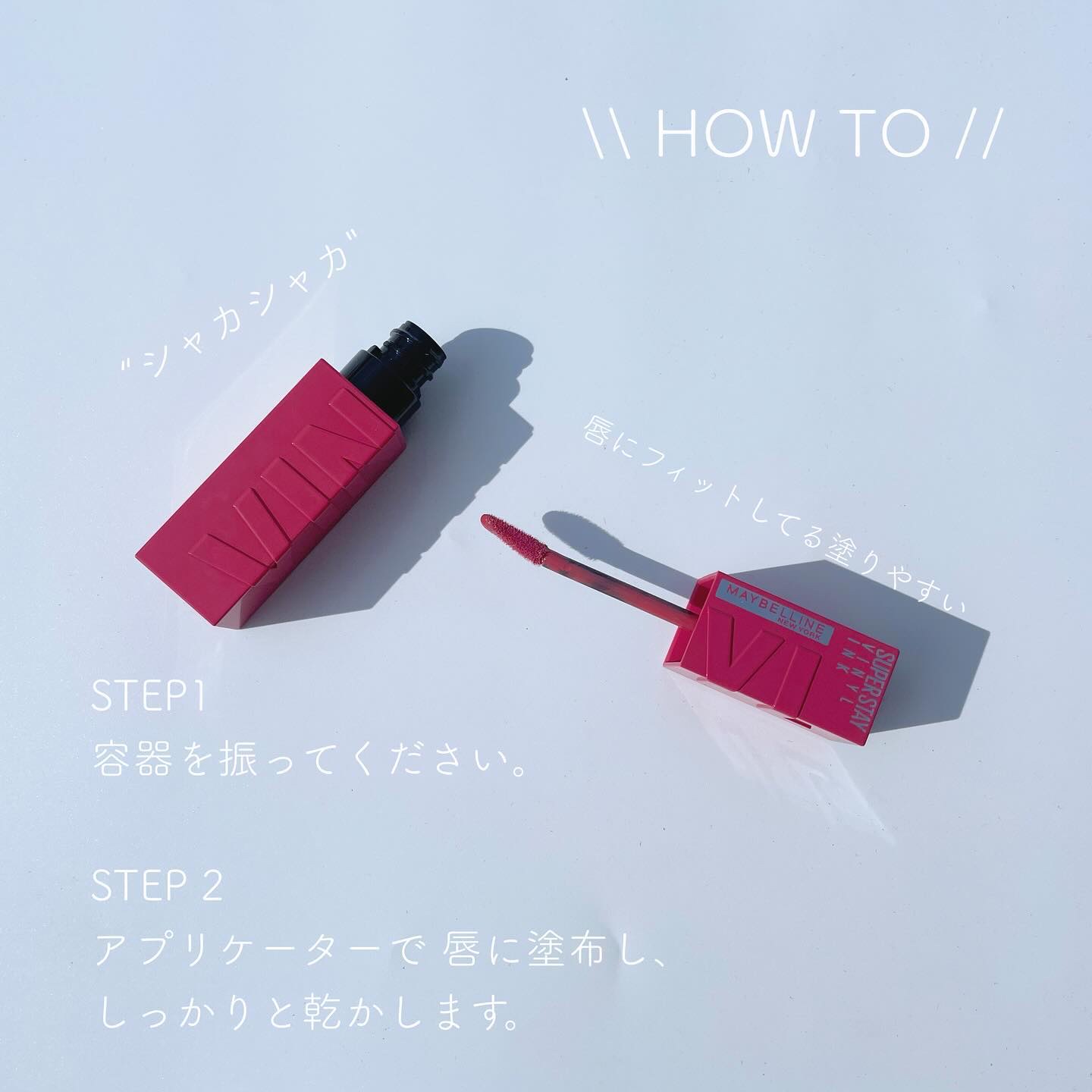 - メイベリン人気No.1リップ からツヤタイプついに誕生!*1 シャカシャカ振って!#落ちないリップ*2 色・ツヤ・仕上がり、全てロック。 〈製品特徴〉 ①シャカシャカ振って、長持ち効果! 膜形成成分*3と高濃度ピグメント*4の2層構造。 シャカシャカ振ると膜形成成分*3と高濃度ピグメント*4が混ざり、 色、ツヤ、仕上がりの長持ち効果! ②色もツヤも落ちない! 最長16時間続く、#落ちないリップ*2 メイベリン独自のトリプルロックフォーミュラ。色・ツヤ・仕上がり、全てロック。 食べても、飲んでも、塗りたての仕上がりが落とすまで続く。*2 ③濃密な発色とツヤをひと塗りで。 塗った瞬間、ムラなく発色。 顔色まで明るくトーンアップするような仕上がりに。*5 ④唇を包み込み、うるおい感ある仕上がりに。 乾燥しにくく、一日中*6心地良い仕上がりに。 塗った瞬間、唇をふっくらとみせ、縦じわが目立ちにくい。 *1:インテージSRI+調べ。2018年9月~2022年7月までのスーパー、ドラッグストア等におけるメイベリン ニューヨーク リップカテゴリーでの売上金額に基づく。 *2:着用16時間を想定した最長の場合において。メイクアップリムーバーで落とすことが可能です。メイベリン ニューヨーク調べ。個人差があります。 *3:トリメチルシロキシケイ酸、ポリプロピルシルセスキオキサン、アルキル(C30-45)ジメチルシリルポリプロピルシルセスキオキサン、ポリメチルシルセスキオキサン/トリメチルシロキシケイ酸。 *4:メイベリン従来品(ウォーター シャイニー ボリューミー パール)と比較において、3倍のピグメントを配合 *5:メイクアップ効果 *6:メイベリン ニューヨーク調べ。個人差があります。