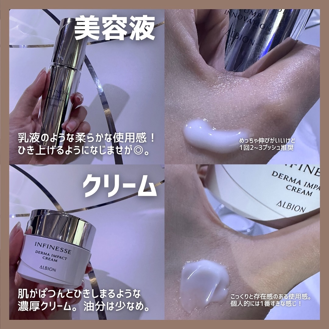\乳液でふっくらな肌触りに/【ALBIONアンフィネスパンプマトリクスミルク】☑️200g¥7.700アルビオンといえば先行乳液、乳液を使ってから化粧水という使い方。とろみがしっかりあるややクリームに近いくらいのテクスチャー。3プッシュほどコ...