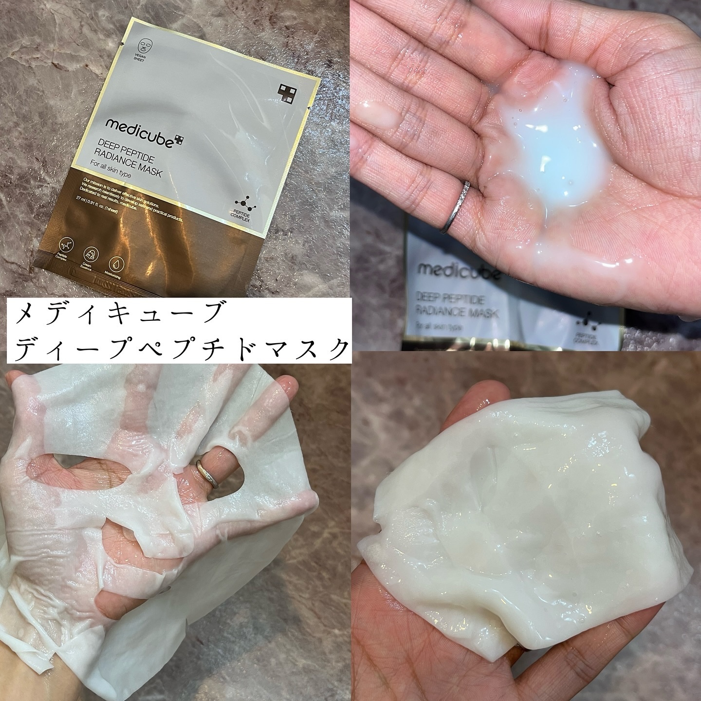 MEDICUBEディープペプチドマスクインスタでこれの紹介をさてとる方がおって、「そういや先日、なんかもろたかも?」と思い出して引っ張り出した🤣すぐ忘れてまう。とろみの強いクリーム状のエッセンスに浸ったシートは厚めに感じますな🤔ヒタヒタのせい...
