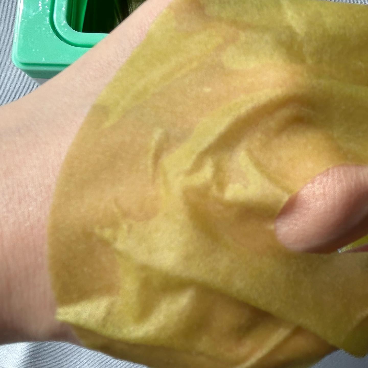 柔らかくて薄めのシートでサイズは小さすぎず大きすぎずちょうど良い。10分ぐらいでシートを取った後もまだエッセンスが残ってるから腕にもしっかり。 高濃度ビタミンCアンプルとはこれだ!って感じかな。香りもベタッとしたテクスチャーも塗った後のペタペタ感も。 みずみずしく伸びも良く腕にもスルスル塗りやすい。顔に塗ると少しピリピリするのと、日焼け止めっぽい香りが気になるから私はボディ用に使ってるかなー。