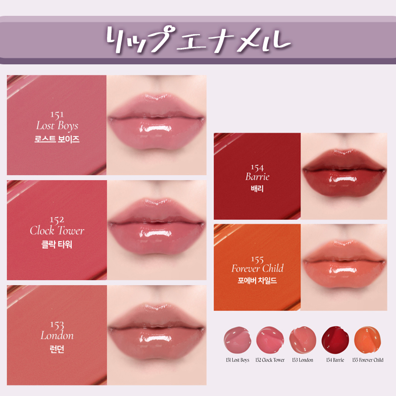 - <#121 ピーター> ビスジグリセリルポリアシルアジペート-2、トリイソステアリン酸ポリグリセリル-2、イソドデカン、ダイマージリノール酸ダイマージリノレイルビス(ベヘニル/イソステアリル/フィトステリル)、マイクロクリスタリンワックス、トリエチルヘキサノイン、(ヒマシ油/IPDI)コポリマー、1,2-ヘキサンジオール、ポリメチルシルセスキオキサン、メントキシプロパンジオール、メントール、ジメチルシリル化シリカ、ポリヒドロキシステアリン酸、トリ(カプリル/カプリン酸)グリセリル、ブドウ種子油、合成フッ化物、チタンジオキシド、レシチン、黒色酸化鉄、イソプロピルミステート、アイソステアリクアシド、エチルヘキシルパルミテート、ポリグリセリル-3ポリリシノリエート、ベンジルベンゾエート、イチハナ種子油、アボカドオイル、タルマジ花オイル、香料、バニリルブチルエター、赤色202号、リナルール、精製水、ヘキシルシンナム粒、チンオキサイド、アスコビックアシッド、トコフェロール <#122 ネバーランド> ビス-ジグリセリルポリアシルアジフェート-2、ポリグリセリル-2トライアイソステアレート、アイソドデケイン、ダイマージリノール酸ダイマージリノレイルビス(ベヘニル/イソステアリル/8フィトステリル)、マイクロクリスタリンワックス、トリエチルヘキサノイン、キャスターオイル/アイピーディーアイコポリマー、ポリメチルシルセスキオキセイン、1,2-ヘキサンジオール、メントキシプロパンダイオール、メントール、カプリリック/カプリクトライグリセリド、ジメチルシリル化シリカ、ポリヒドロキシステアリックアシッド、ブドウ種子油、カルシウムアルミボロシリケート、合成フッ化フルオロゴファイト、レシチン、チタンジオキシド、エチルヘキシルパルミテート、アイソプロピルミリステイト、アイソステアリックアシッド、黒色酸化鉄、ポリグリセリル-3ポリリシノリエート、ベンジルベンゾエイト、ダルマチルオイル、アボカドオイル、イッコッシオイル、香料、バニリルブチルエチル酸化器、赤色酸化鉄ホキシド、精製水酸化アルキシル酸化アルキシル酸化アルセイド、アルキシル酸化剤 <#123 ティックトック> ビス-ジグリセリルポリアシルアジフェート-2、イソドデケイン、ポリグリセリル-2トライアイソステアレート、ダイマージリノール酸ダイマージリノレイルビス(ベヘニル/イソステアリル/8フィトステリル)、マイクロクリスタリンワックス、トライエチルヘキサノイン、キャスターオイル/アイピーディーアイコポリマー、1,2-ヘキサンジオール、ポリメチルシルセスキオキセイン、メントキシプロパンジオール、メントール、チタンジオキシド、ポリヒドロキシステアリクアシド、カプリリック/カプリクトライグリセリド、シリカジメチルシリレート、カルシウムアルミボロシリケート、ブドウ種子油、合成フッ化物フロゴファイト、赤色104号の(1)、レシチン、イソプロピルミリステイト、エチルヘキシルパルミテート、アイソステアリックアシッド、ポリグリセリル-3ポリリシノリエート、ベンジルベンゾエイト、イチジク種子油、月見草オイル、アボカドオイル、ダイアイソステアリルマルレート、黄色5号、香料、バニリルブチルエター、リナルール、赤色202号、精製水、チンオキシド、ヘキシルシンナムアル、アスコビックアシド、トコフェロール <#124 ミスベル> ビス-ジグリセリルポリアシルアジフェート-2、イソドデケイン、ポリグリセリル-2トライアイソステアレート、ダイマージリノール酸ダイマージリノレイルビス(ベヘニル/イソステアリル/8フィトステリル)、マイクロクリスタリンワックス、トライエチルヘキサノイン、キャスターオイル/アイピーディーアイコポリマー、ポリメチルシルセスキオキセイン、1,2-ヘキサンジオール、メントキシプロパンジオール、メントール、チタンジオキサイド、カプリリック/カプリクトライグリセリド、ジメチルシリル化シリカ、ポリヒドロキシステアリックアシッド、カルシウムアルミニウムボロシリケート、合成フッ化物、ブドウ種子油、レシチン、エチルヘキシルパルミテート、イソプロピルミステート、アイソステアリックアシッド、赤色104号の(1)、ポリグリセリル-3ポリリシノリエート、ベンジルベンゾエート、月見草オイル、アボカドオイル、サフラワー油、青色1号、香料、赤色酸化鉄、バニリルブチルエター、リナルール、精製水、チンオキサイド、ヘキシルシンナマル、アスコビクアシッド、トコフェロール <#125 ウェンディ> ビス-ジグリセリルポリアシルアジフェート-2、イソドデケイン、ポリグリセリル-2トライアイソステアレート、ダイマージリノール酸ダイマージリノレイルビス(ベヘニル/イソステアリル/8フィトステリル)、マイクロクリスタリンワックス、トライエチルヘキサノイン、キャスターオイル/アイピーディーアイコポリマー、ポリメチルシルセスキオキセイン、1,2-ヘキサンジオール