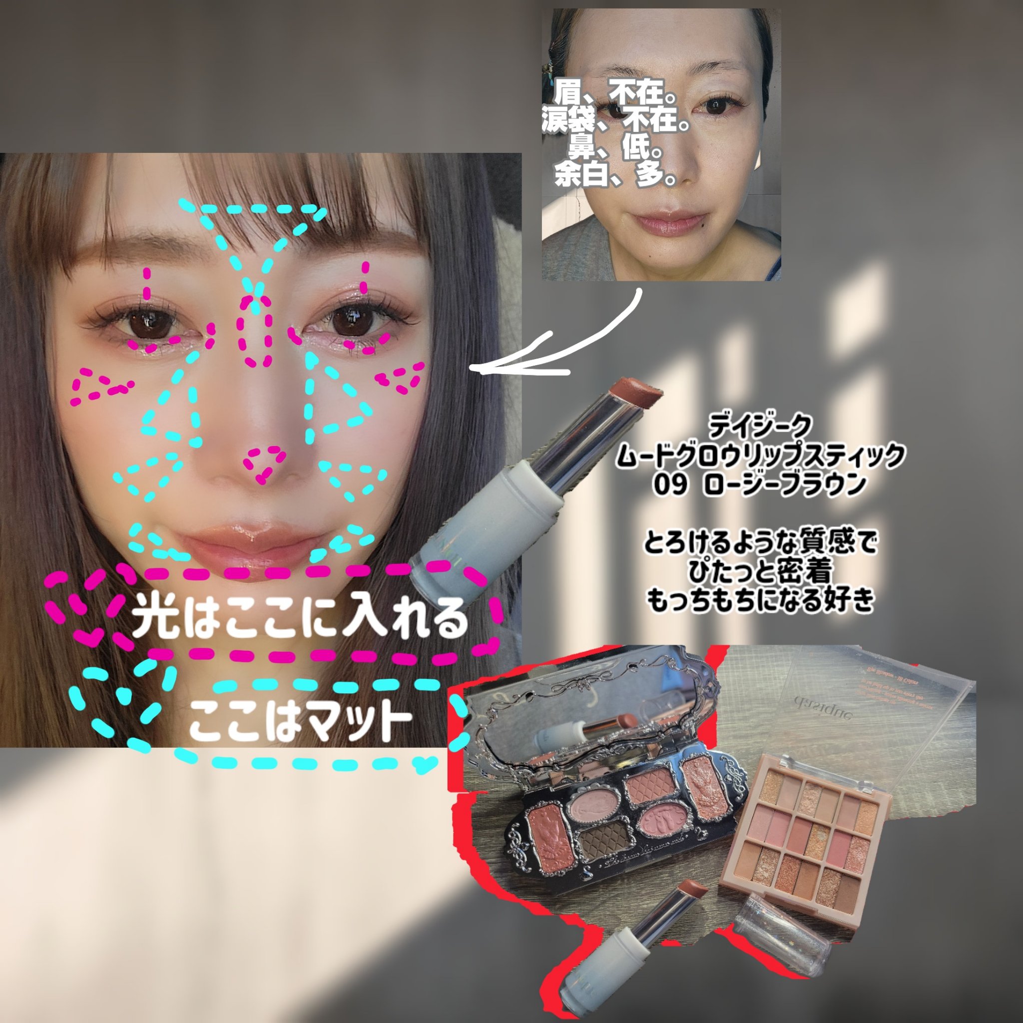 ちゅるっと見せが今のおすすめかな? ちゅるっとさせるには細いブラシがおすすめ❤ あーメイクって詐欺れるから楽しい。 盛れなかった日ももちろんあるけど盛れると1日楽しくなれる。 ハイライト、チーク、シェード、一体どこに何を入れれば盛れるの?!!って迷走中の皆さんに。