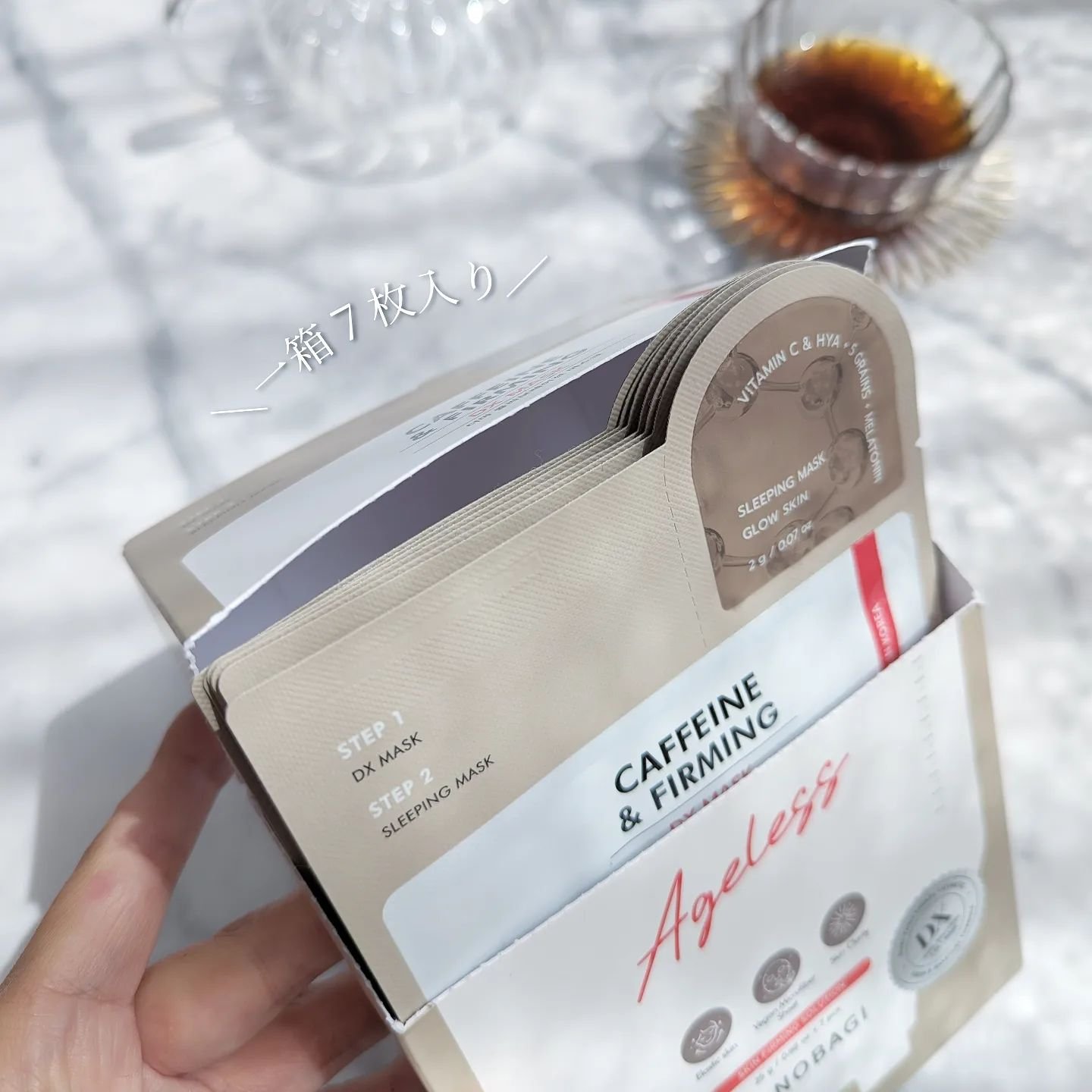 - 眠っている肌のポテンシャルを目覚めさせる! SKIN POTENTIAL UP!お肌のお悩みオーダーメイド 2in1マスク 【全5種類】 AC&AC スポット 効能 : #緊急鎮静 #トラブル鎮静 #水分供給 剤形 : さわやかでしっとりした透明感のあるエッセンス スリーピングマスク(製剤) : べたつかない半透明ゲル、素早く吸収 アンチ セボム フォア 効能 : #もちもち毛穴 #皮脂調節 #アンチセボム #角質ケア 剤形 : さわやかでしっとりした薄い黄色のエッセンス スリーピングマスク(製剤) : べたつかない半透明ゲル、素早く吸収 カフェイン&ファーミング 効能 : #タンタン保湿 #もちもち弾力 #リフティング #弾力ケア 剤形 : さわやかでしっとりした透明感のあるエッセンス スリーピングマスク(製剤) : べたつかない半透明ゲル、素早く吸収 ヒヤ アクアフレックス 効能 : #水分たっぷり #肌のキメケア #バリアケア #きめ細かい保湿 剤形 : 水分たっぷりのクリームエッセンス スリーピングマスク(製剤) : べたつかない半透明ゲル、素早く吸収 ブライト & ヤング 効能 : #童顔肌 #さわやか感触 #ブライトニング #抗酸化 剤形 : 半透明、しっとりしたエマルジョンエッセンス スリーピングマスク(製剤) : べたつかない半透明ゲル、素早く吸収