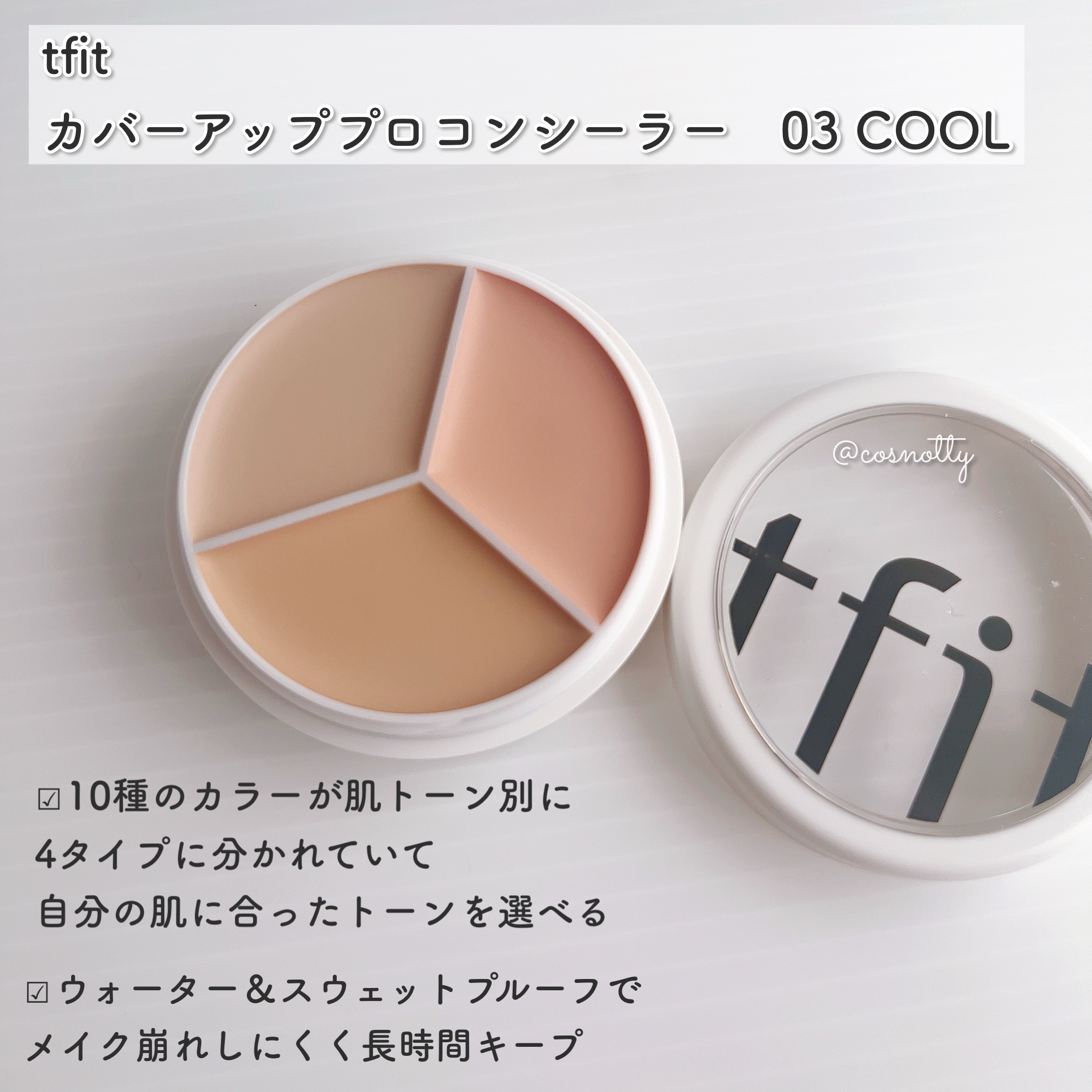計1,500万個販売されたTFITの大人気コンシーラーに加わった新色は肌補正に特化しているよ✨ 高カバー&高密着&ロングラスティング3色コンシーラーだから、崩れにくく、マスク着用時や時間がたつと崩れるベースメイクに悩んでいる人におすすめだよ👍 オンラインの場合、TFITの商品が海外によく知られているため、類似品が販売されています。