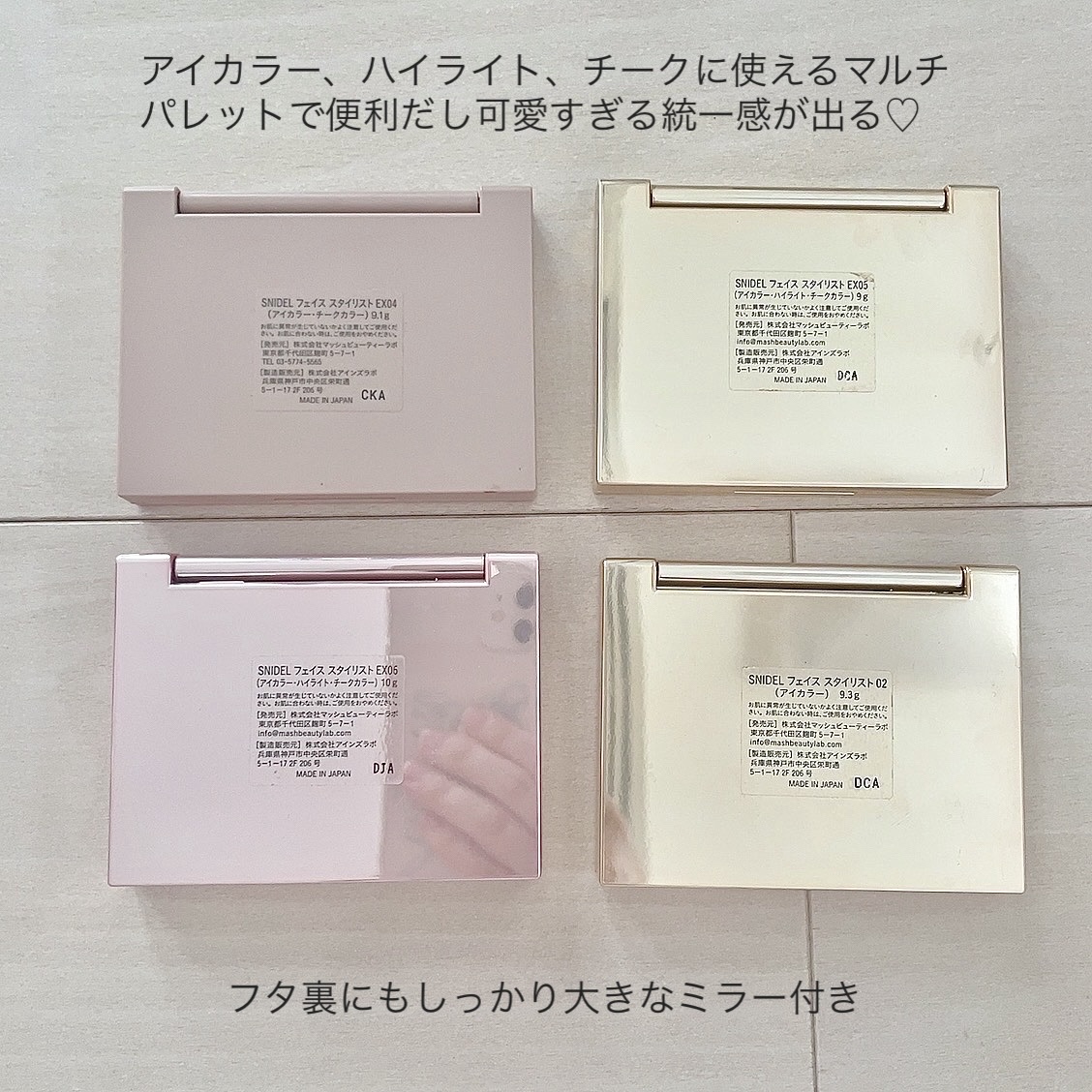 - <01 Iconic Beige> 合成フルオロフロゴパイト、タルク、マイカ、イソステアリン酸ポリグリセリル-2、トリ(カプリル酸/カプリン酸)グリセリル、シリカ、ダイマージリノール酸(フィトステリル/イソステアリル/セチル/ステアリル/ベヘニル)、アルガニアスピノサ核油、ホホバ種子油、ザクロ花エキス、ジイソステアリン酸ポリグリセリル-3、セスキイソステアリン酸ソルビタン、ラウロイルリシン、デヒドロ酢酸Na、カプリル酸グリセリル、エチルヘキシルグリセリン、トコフェロール、クロルフェネシン、ホウケイ酸(Ca/Al)、酸化チタン、ホウケイ酸(Ca/チタン)、酸化スズ、酸化鉄、銀 <02 Angel's Ladder> タルク、合成フルオロフロゴパイト、イソステアリン酸ポリグリセリル-2、ラウロイルリシン、トリ(カプリル酸/カプリン酸)グリセリル、ダイマージリノール酸(フィトステリル/イソステアリル/セチル/ステアリル/ベヘニル)、アルガニアスピノサ核油、ホホバ種子油、ザクロ花エキス、ジイソステアリン酸ポリグリセリル-3、セスキイソステアリン酸ソルビタン、デヒドロ酢酸Na、カプリル酸グリセリル、エチルヘキシルグリセリン、トコフェロール、クロルフェネシン、ホウケイ酸(Ca/Al)、マイカ、酸化チタン、シリカ、酸化スズ、酸化鉄 <EX10 Romantic Dreamer> タルク、トリ(カプリル酸/カプリン酸)グリセリル、イソステアリン酸ポリグリセリル-2、ラウロイルリシン、ダイマージリノール酸(フィトステリル/イソステアリル/セチル/ステアリル/ベヘニル)、シリカ、アルガニアスピノサ核油、ホホバ種子油、ザクロ花エキス、ジイソステアリン酸ポリグリセリル-3、セスキイソステアリン酸ソルビタン、トリ(カプリル酸/カプリン酸/ミリスチン酸/ステアリン酸)グリセリル、デヒドロ酢酸Na、カプリル酸グリセリル、エチルヘキシルグリセリン、トコフェロール、クロルフェネシン、合成フルオロフロゴパイト、マイカ、ホウケイ酸(Ca/Al)、酸化チタン、酸化鉄、Al、ホウケイ酸(Ca/チタン)、グンジョウ、銀、酸化スズ、水酸化Al、カオリン、金、赤202