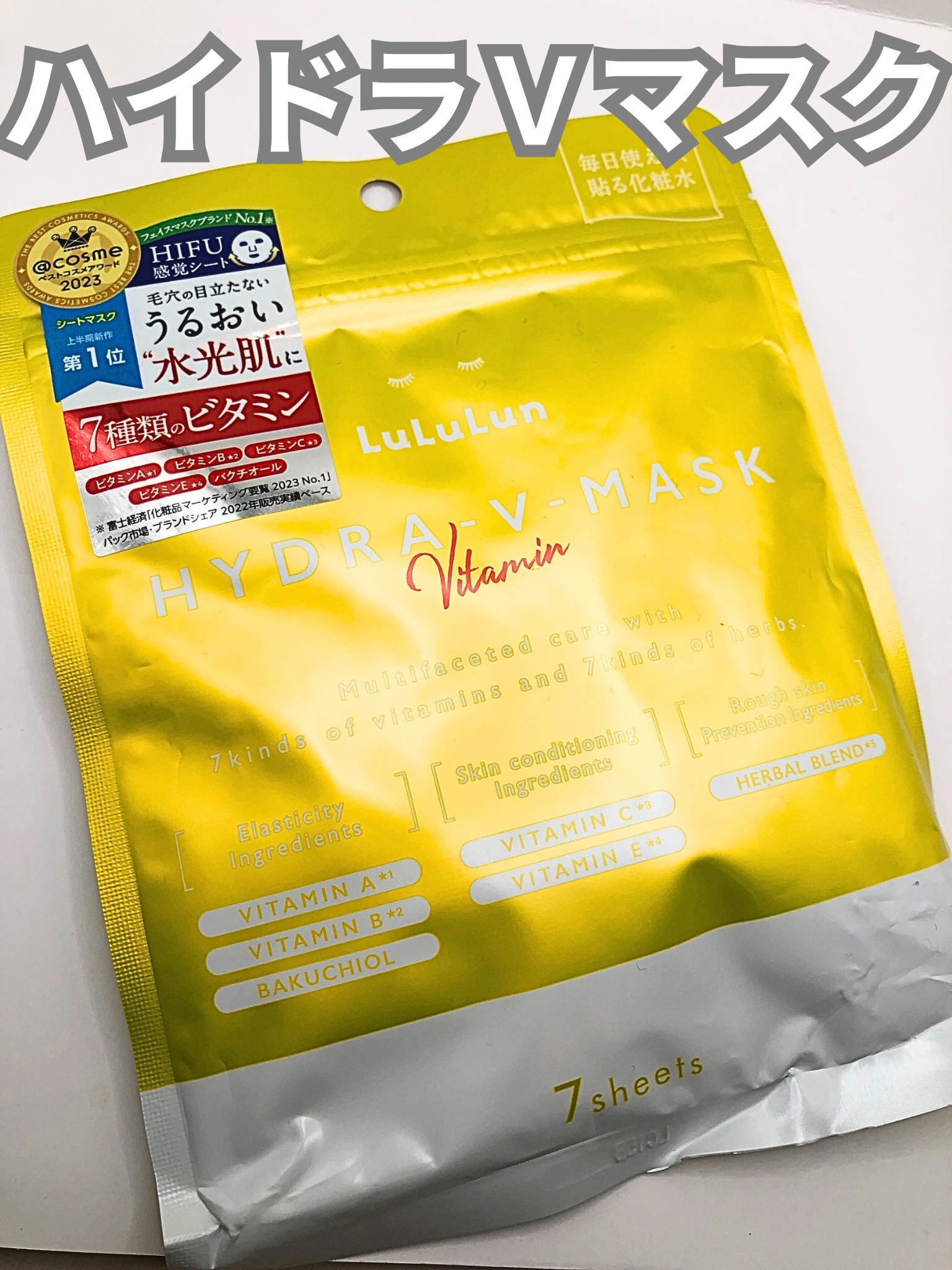 - ルルルンからビタミンたっぷりの化粧水フェイスマスクが新登場。 7種類のビタミン※1と7種類のハーブ※1で肌全体を素早くケア&集中肌メンテナンス。 新開発のフェイスラインに密着するシートで肌を引き締めながら肌のすみずみ※2までうるおいで満たし、毛穴の目立たないうるおいたっぷりの“水光肌”へ。 (※1 全て保湿成分として ※2 角質層まで)