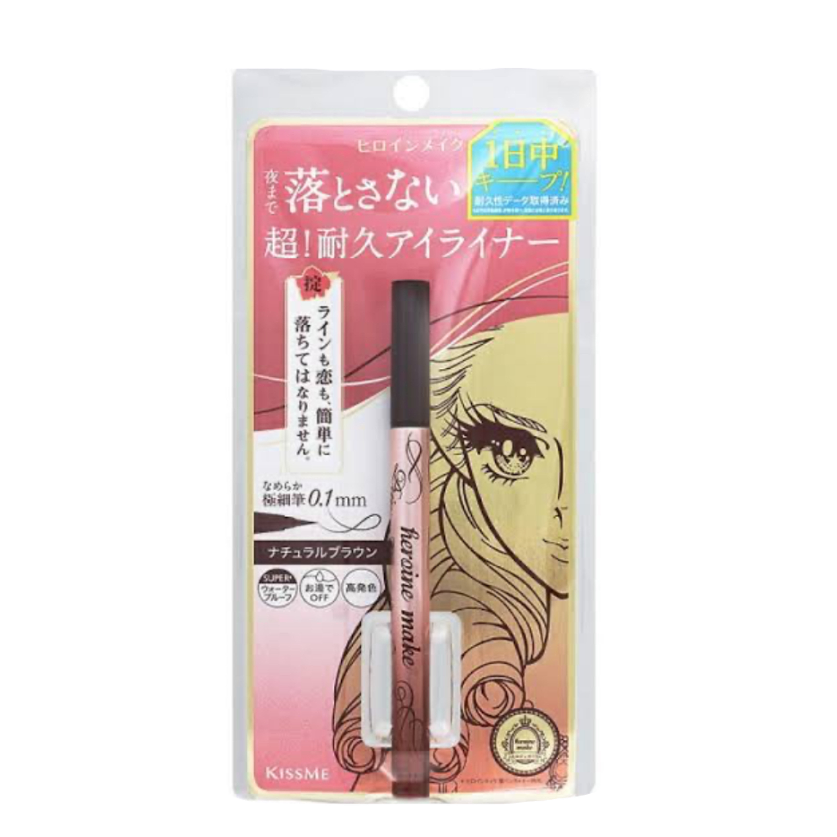 - ヒロイン史上最強※1 夜まで落とさない! 超!耐久リキッドアイライナーが新登場! ■超!耐久 スーパーウォータープルーフ 新耐久性成分と新高密着成分で、ヒロインメイク史上最高※1の耐久性を実現。 涙・汗・皮脂・こすれに強く、1日中※2美しいラインをキープします。 ※1 ヒロインメイク 筆ペンライナー内で。 ※2 日中の活動時間。伊勢半調べ。効果には個人差があります。 ■なめらかな描き心地と高発色 ヒロインメイク初となる新リキッドコントロール機能を採用。 目尻までかすれず、高発色の美しいラインが一気になめらかに描けます。 ■描きやすい!筆先0.1mmの国産極細筆 描きやすさにこだわった、絶妙なコシのある極細筆を採用。 目尻のハネやまつ毛の隙間など、細部まで狙い通りに描けます。 ■染料不使用 染料不使用で肌に色素が残りません。 ■にじまないのにお湯でオフ 高い耐久性でありながら、ぬるま湯で落とせるので日常使いに最適です。 *耐水性が高い処方です。落ちにくく感じる場合は洗顔料(石けん等)をご使用ください。 ■6種類の美容液成分配合 ■抜群の速乾性 速乾性に優れ、メイク中のよれ、にじみに、まばたきにも負けません。