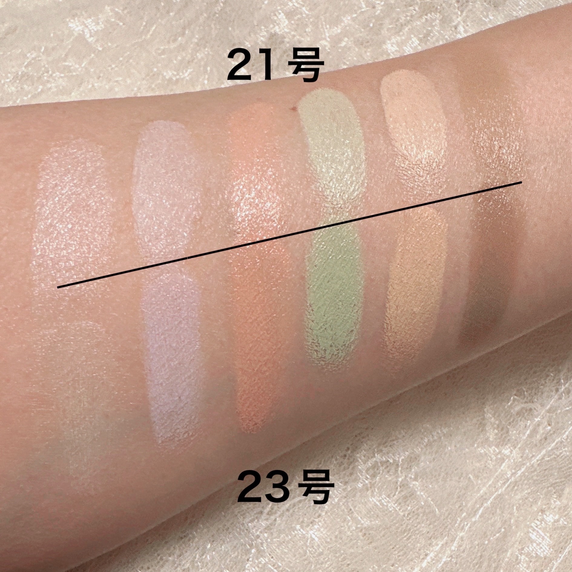 - <21号> 1. Pure : トリ(カプリル酸/カプリン酸)グリセリル, エチルヘキサン酸セチル, ジメチコン, リンゴ酸ジイソステアリル, ラウリン酸ヘキシル, ポリイソブテン, マイカ, マイクロクリスタリンワックス, ダイマージリノール酸(フィトステリル/イソステアリル/セチル/ステアリル/ベヘニル), 酸化チタン, テトラ(ヒドロキシステアリン酸/イソステアリン酸)ジペンタエリスリチル, シリカ, リンゴ種子油, 合成ワックス, ポリエチレン, イソステアリン酸ソルビタン, 合成フルオロフロゴパイト, ツバキ油, 水添ヤシ油, カミメボウキ葉エキス, (ビニルジメチコン/メチコンシルセスキオキサン)クロスポリマー, ポリヒドロキシステアリン酸, パルミチン酸エチルヘキシル, ミリスチン酸イソプロピル, イソステアリン酸, レシチン, ステアラルコニウムヘクトライト, ポリリシノレイン酸ポリグリセリル-3, 炭酸プロピレン, トリイソステアリン酸ポリグリセリル-2, カプリリルグリコール, カプリル酸グリセリル, トリエトキシカプリリルシラン, 精製水, BG, 酸化スズ, 酸化鉄 2. Lavendar : 酸化チタン, トリ(カプリル酸/カプリン酸)グリセリル, エチルヘキサン酸セチル, ジメチコン, ラウリン酸ヘキシル, マイクロクリスタリンワックス, ポリイソブテン, シリカ, リンゴ酸ジイソステアリル, ダイマージリノール酸(フィトステリル/イソステアリル/セチル/ステアリル/ベヘニル), テトラ(ヒドロキシステアリン酸/イソステアリン酸)ジペンタエリスリチル, リンゴ種子油, 合成ワックス, マイカ, ポリエチレン, イソステアリン酸ソルビタン, リンゴ種子油, 合成ワックス, マイカ, ポリエチレン, イソステアリン酸ソルビタン, グンジョウ, ツバキ油, 水添ヤシ油, カミメボウキ葉エキス, ポリヒドロキシステアリン酸, パルミチン酸エチルヘキシル, ミリスチン酸イソプロピル, イソステアリン酸, レシチン, ステアラルコニウムヘクトライト, ポリリシノレイン酸ポリグリセリル-3, 炭酸プロピレン, カプリリルグリコール, カプリル酸グリセリル, トリエトキシカプリリルシラン, 精製水, BG, 酸化鉄 3, Peach : 酸化チタン, トリ(カプリル酸/カプリン酸)グリセリル, エチルヘキサン酸セチル, ジメチコン, ラウリン酸ヘキシル, マイクロクリスタリンワックス, ポリイソブテン, マイカ, リンゴ酸ジイソステアリル, ダイマージリノール酸(フィトステリル/イソステアリル/セチル/ステアリル/ベヘニル), ㅠㅠテトラ(ヒドロキシステアリン酸/イソステアリン酸)ジペンタエリスリチル, リンゴ種子油, 合成ワックス, マイカ, ポリエチレン, イソステアリン酸ソルビタン, シリカ, リンゴ種子油, 合成ワックス, ポリエチレン, イソステアリン酸ソルビタン, ツバキ油, 水添ヤシ油, カミメボウキ葉エキス, ポリヒドロキシステアリン酸, パルミチン酸エチルヘキシル, ミリスチン酸イソプロピル, イソステアリン酸, レシチン, ステアラルコニウムヘクトライト, ポリリシノレイン酸ポリグリセリル-3, トリエトキシカプリリルシラン, 炭酸プロピレン, カプリリルグリコール, カプリル酸グリセリル, 精製水, BG, 酸化鉄 4. Mint : 酸化チタン, トリ(カプリル酸/カプリン酸)グリセリル, シリカ, エチルヘキサン酸セチル, ポリイソブテン, テトラ(ヒドロキシステアリン酸/イソステアリン酸)ジペンタエリスリチル, マイクロクリスタリンワックス, マイカ, ジメチコン, リンゴ酸ジイソステアリル, リンゴ種子油, 合成ワックス, 酸化鉄, セレシン, ポリヒドロキシステアリン酸, ツバキ油, 水添ヤシ油, カミメボウキ葉エキス, イソステアリン酸ソルビタン, 炭酸Ca, パルミチン酸エチルヘキシル, ミリスチン酸イソプロピル, イソステアリン酸, レシチン, リン酸2Ca, ポリリシノレイン酸ポリグリセリル-3, トリエトキシカプリリルシラン, ステアラルコニウムヘクトライト, カプリリルグリコール, カプリル酸グリセリル, 炭酸プロピレン, 精製水, BG, 酸化クロム, 酸化鉄 5. Ivory : 酸化チタン, トリ(カプリル酸/カプリン酸)グリセリル, シリカ, エチルヘキサン酸セチル, ポリイソブテン, テトラ(ヒドロキシステアリン酸/イソステアリン酸)ジペンタエリスリチル, マイカ, マイクロクリスタリンワックス, ジメチコン, リンゴ酸ジイソステアリル, リンゴ種子油, 合成ワックス, 酸化鉄, セレシン, ポリヒドロキシステアリン酸, ツバキ油, 水添ヤシ油, カミメボウキ葉エキス, イソステアリン酸ソルビタン, 炭酸Ca, パルミチン酸エチルヘキシル, ミリスチン酸イソプロピル, イソステアリン酸, レシチン, リン酸2Ca, ポリリシノレイン酸ポリグリセリル-3, トリエトキシカプリリルシラン, ステアラルコニウムヘクトライト, カプリリルグリコール, カプリル酸グリセリル, 炭酸プロピレン, 精製水, BG, 酸化鉄 6. silhouette : 酸化チタン, ラウリン酸ヘキシル, エチルヘキサン酸セチル, シリカ, トリ(カプリル酸/カプリン酸)グリセリル, ジメチコン, マイクロクリスタリンワックス, マイカ, ダイマージリノール酸(フィトステリル/イソステアリル/セチル/