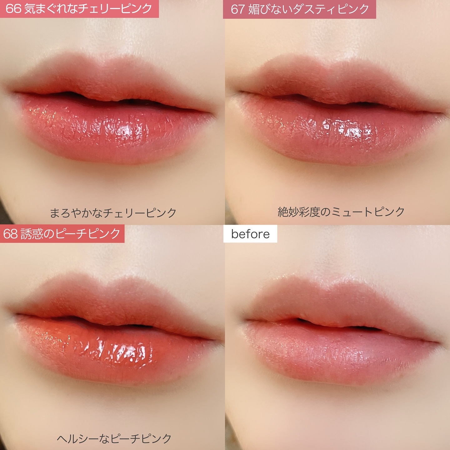 ティッシュオフしてもこすってもツヤ感が消えないのがすごい✨ 青みと黄みの絶妙バランスでどんな肌トーンでも使いやすいピンクカラーが登場💓 飲んだり食べたりしても長時間かわいい唇をキープできるのはうれしいっ👍🏻