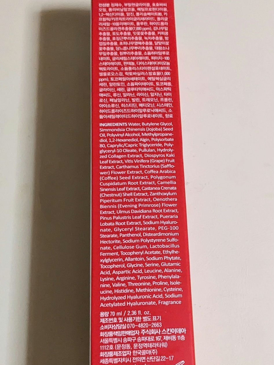 - <70g> 水、BG、ホホバ種子油、ポリビニルアルコール、メチルプロパンジオール、1、2ーヘキサンジオール、アルギン酸Na、ポリソルベート80、トリ(カプリル酸/カプリン酸)グリセリル、オレイン酸ポリグリセリルー10、プルラン、加水分解コラーゲンエキス、カキ葉エキス、ブドウ果実エキス、ベニバナ花エキス、コーヒー種子エキス、イタドリ根エキス、チャ葉エキス、クリ殻エキス、サンショウ果実エキス、メマツヨイグサ花エキス、ウルムスダビディアナ根エキス、ダイオウショウ葉エキス、クズ根エキス、ヒアルロン酸Na、ステアリン酸グリセリル、ステアリン酸PEG-100、パンテノール、ジステアルジモニウムヘクトライト、ポリスチレンスルホン酸Na、セルロースガム、乳酸桿菌発酵液、酢酸トコフェロール、エチルヘキシルグリセリン、アラントイン、フィチン酸Na、トコフェロール、グリシン、セリン、グルタミン酸、アスパラギン酸、ロイシン、アラニン、リシン、アルギニン、チロシン、フェニルアラニン、バリン、トレオニン、プロリン、イソロイシン、ヒスチジン、メチオニン、システイン、加水分解ヒアルロン酸、アセチルヒアルロン酸Na、香料 <レッドラクトコラーゲンラッピングマスク 70g(旧)> ハイドロイズドコラーゲンエキス(70.2%)、ホホバ種子油、ポリビニルアルコール、メチルプロパンダイオール、1、2-ヘキサンダイオール、アルジン、ポリソルベート80、カプリリック/カプリクトライグリセリド、ポリグリセリル-10オリエイト、プルラン、月見草の花エキス、タンニレの根エキス、オオマツの葉エキス、葛の根エキス、柿の葉エキス、緑茶エキス、栗皮エキス、一花の花エキス、草皮の実エキス、コーヒー場根エキス、ホオジウムエキス、ブドウの根エキスイモニウムヘクトライト、ソジウムポリスチレンスルホネート、精製水、セルロースガム、トコフェリルアセテート、アラントイン、ブチレングライコール、ソジウムパイテート、ラクトバチルス発酵物(1,000ppm)、グライシン、セリン、グルタミックアシッド、アスパティックアシッド、ロイシン、アラニン、アルジニン、バリン、アイソロイシン、チロシン、トレオニン、フェニルアラニン、プロリン、ヒスチジン、メチオニン、システチルアセチオール、アセテイドアルセチオール、アセテドロイチン
