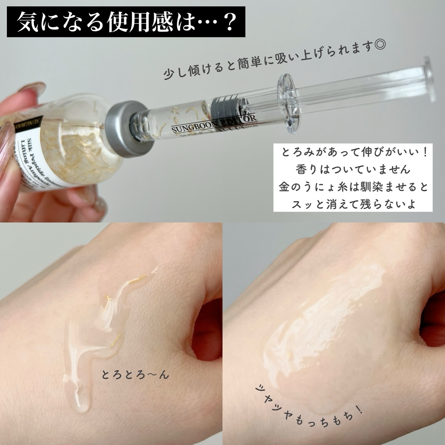 SUNGBOONEDITOR成分エディターシルクペプチドインテンシブリフティングアンプル¥4,500見た目がインパクト大な成分エディターのシルクペプチドインテンシブリフティングアンプル❕コラーゲンでできた金色の糸でうるおいあるお肌に🫧とろみあ...