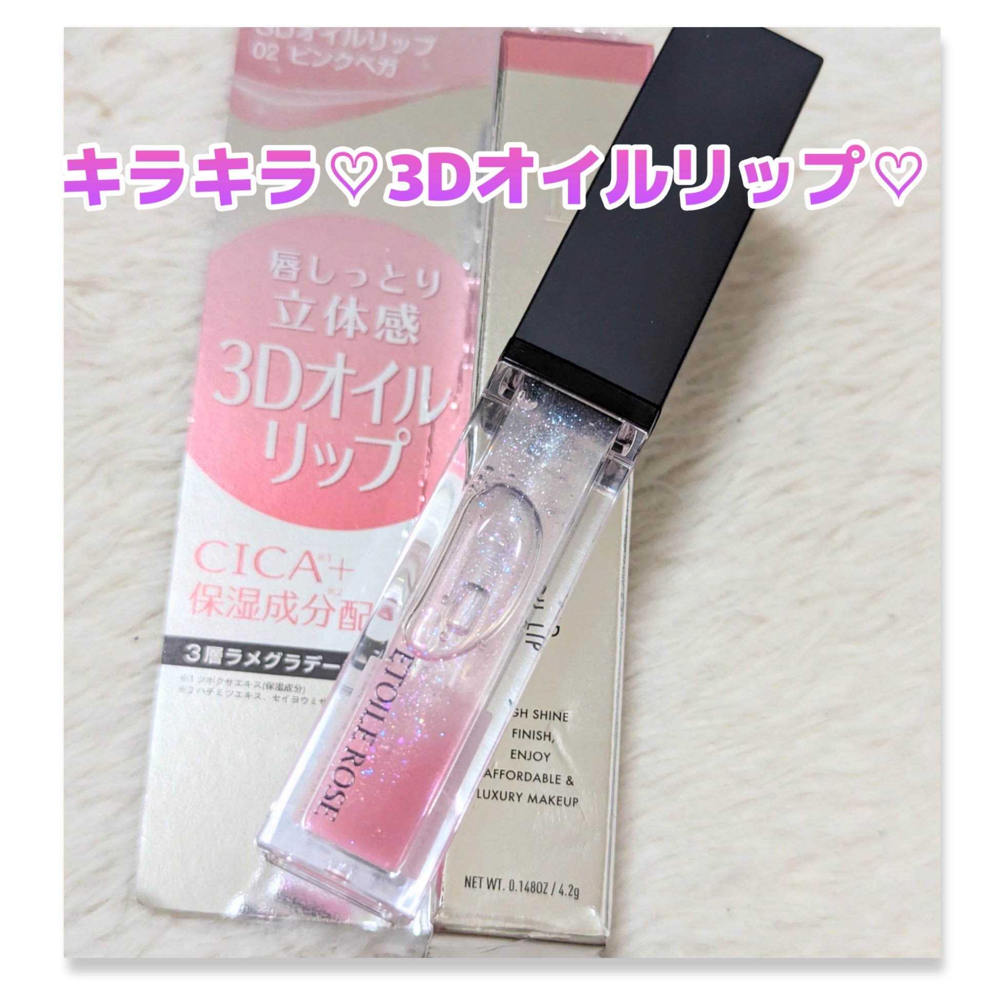 ✨エトワルローズ3Dオイルリップ02ピンクベガ✨ドラッグストアで購入しました💄こちらは贅沢にラメを配合した、オイルタイプのトリートメントリップです。唇の色を活かして1本でつけても、手持ちのリップにツヤとラメ感をプラスする合わせ使いの両方が楽し...