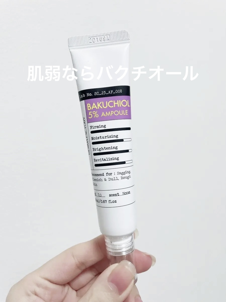 99%高純度バクチオールを50.000ppm配合🙌肌に弾力、栄養を集中的に与えるアンプルを購入しました💕 角質層までしっかり浸透栄養セラム 美白&シワ改善二重機能性 レチノールよりも効果が緩やかなので継続して使用するのがポイント☝️