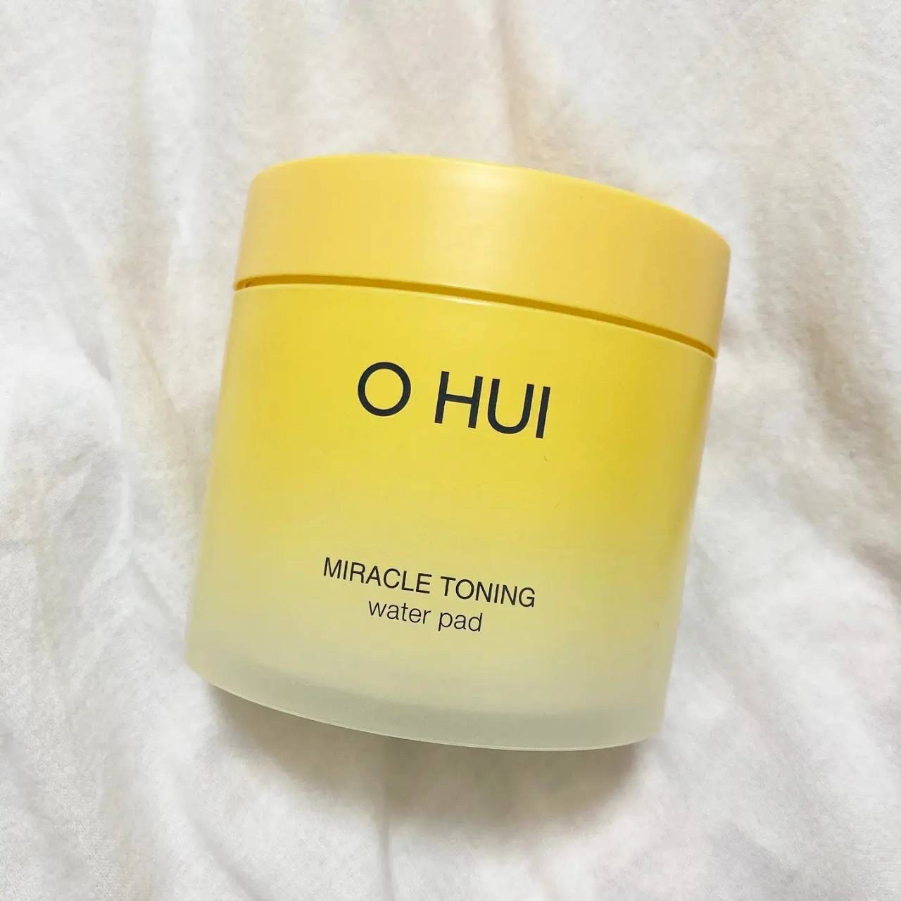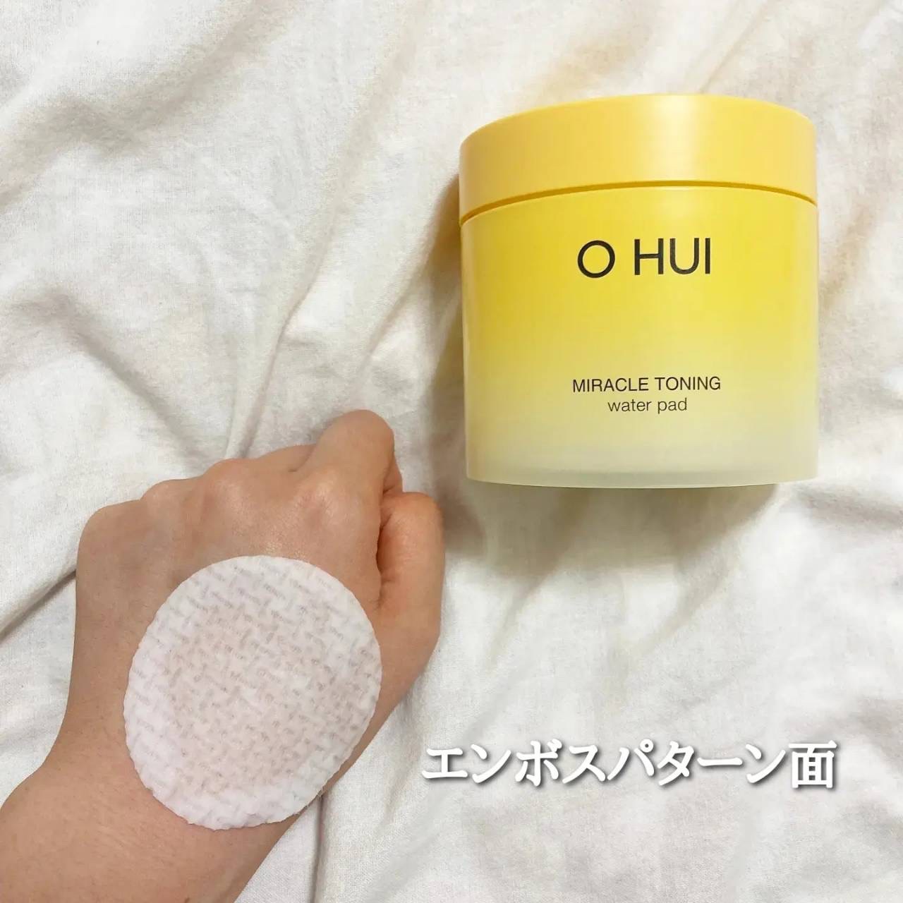 OHUIの人気ライン"ミラクルトーニング"のトナーパッド💛 エンボスパターン面は、柔らかく吸い取って肌のキメをなめらかに整えてくれるそう📝 みずみずしく爽やかな使い心地💎 ベタつきもないので、朝のメイク前の使用にもおすすめ🌸