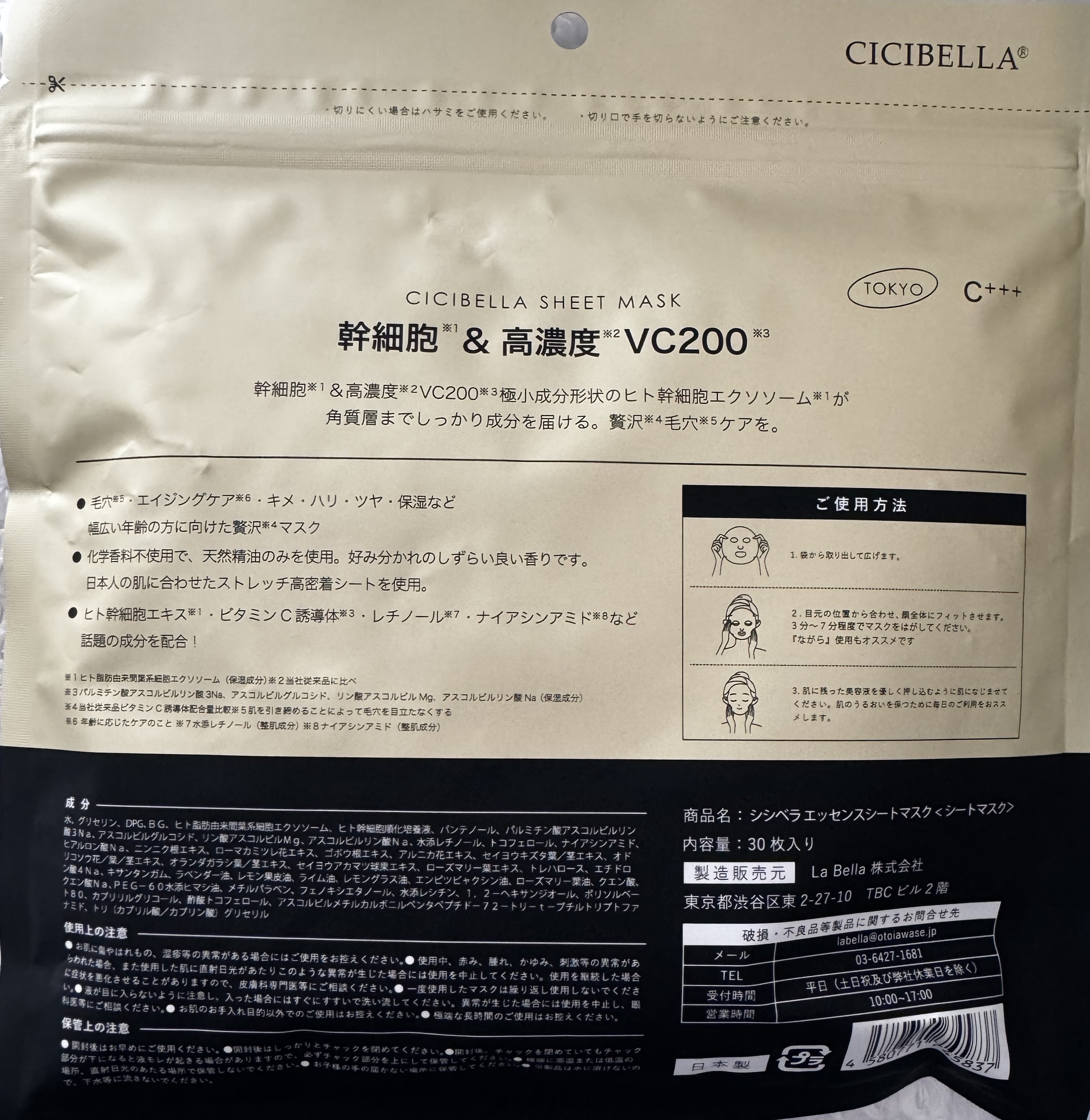 商品詳細情報CICIBELLA シートマスク ヒト幹細胞×VC200