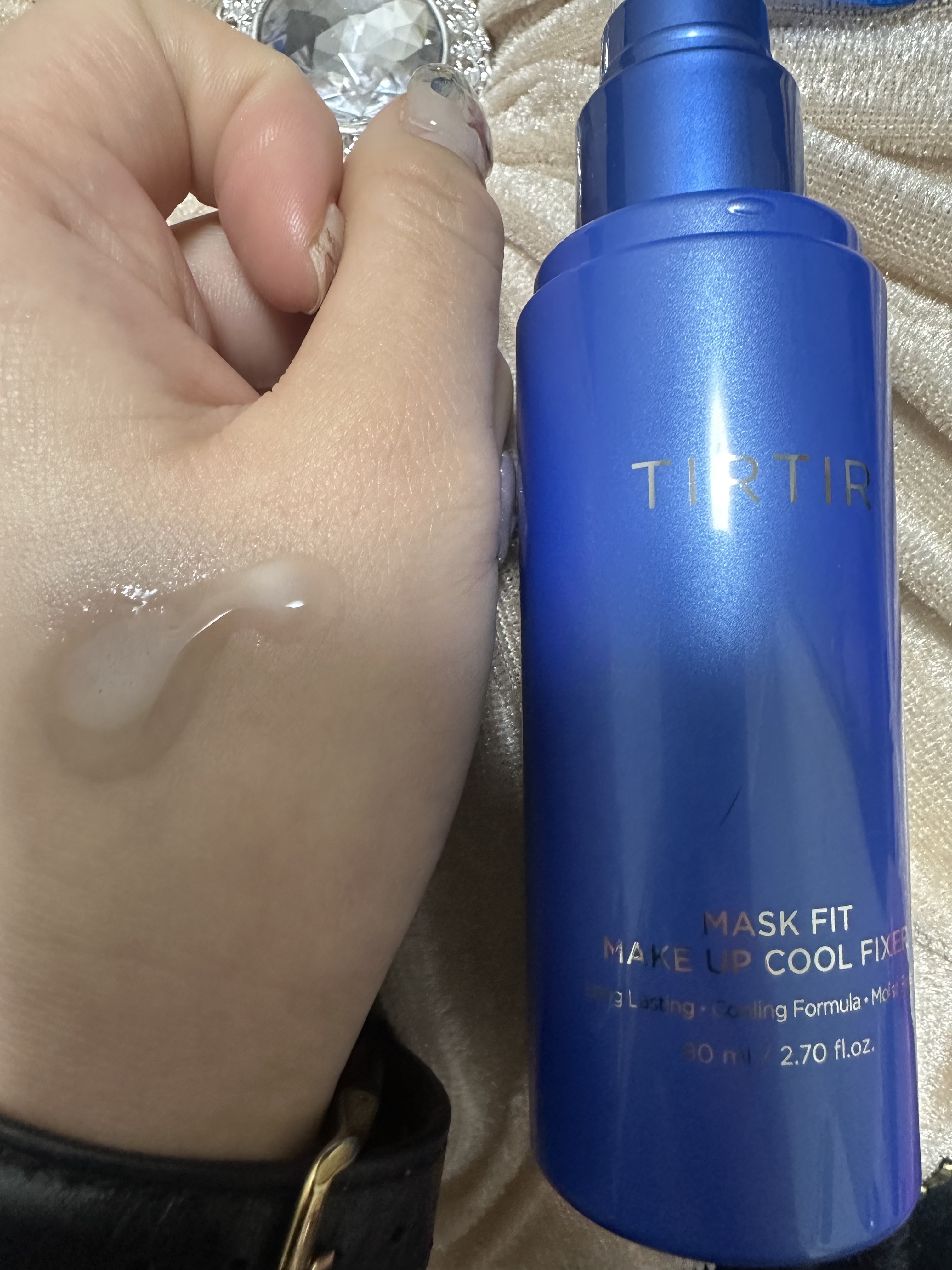 クールタイプ。ミストは少し粗めだけど広範囲にかけられるのでふんわり心地良いです。サラサラな仕上がりに。クール感はあまり感じられなかったけど、赤と同じくキープ力は高め。フォレストハーバルの香りが爽やか。#TIRTIR#マスクフィットメイクアップ...