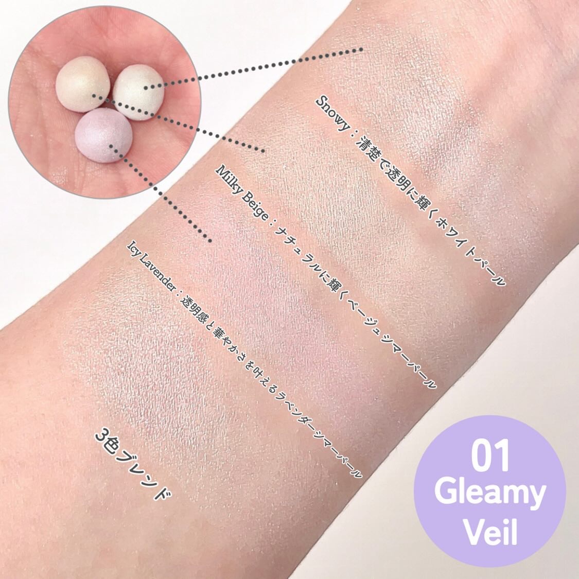 ころんとしたフォルムのパールパウダーが可愛すぎてツボ🥹 3色のパール入りで単色でも使えるしブラシで3色混ぜて使ってもかわいい♡ 01番のクリーミーベイルはほんのりラベンダーカラーも入った透明感爆発カラー! ハイライトとして使うと透明感がUPするよ✨ 気になる方はぜひチェックしてみてください🥰