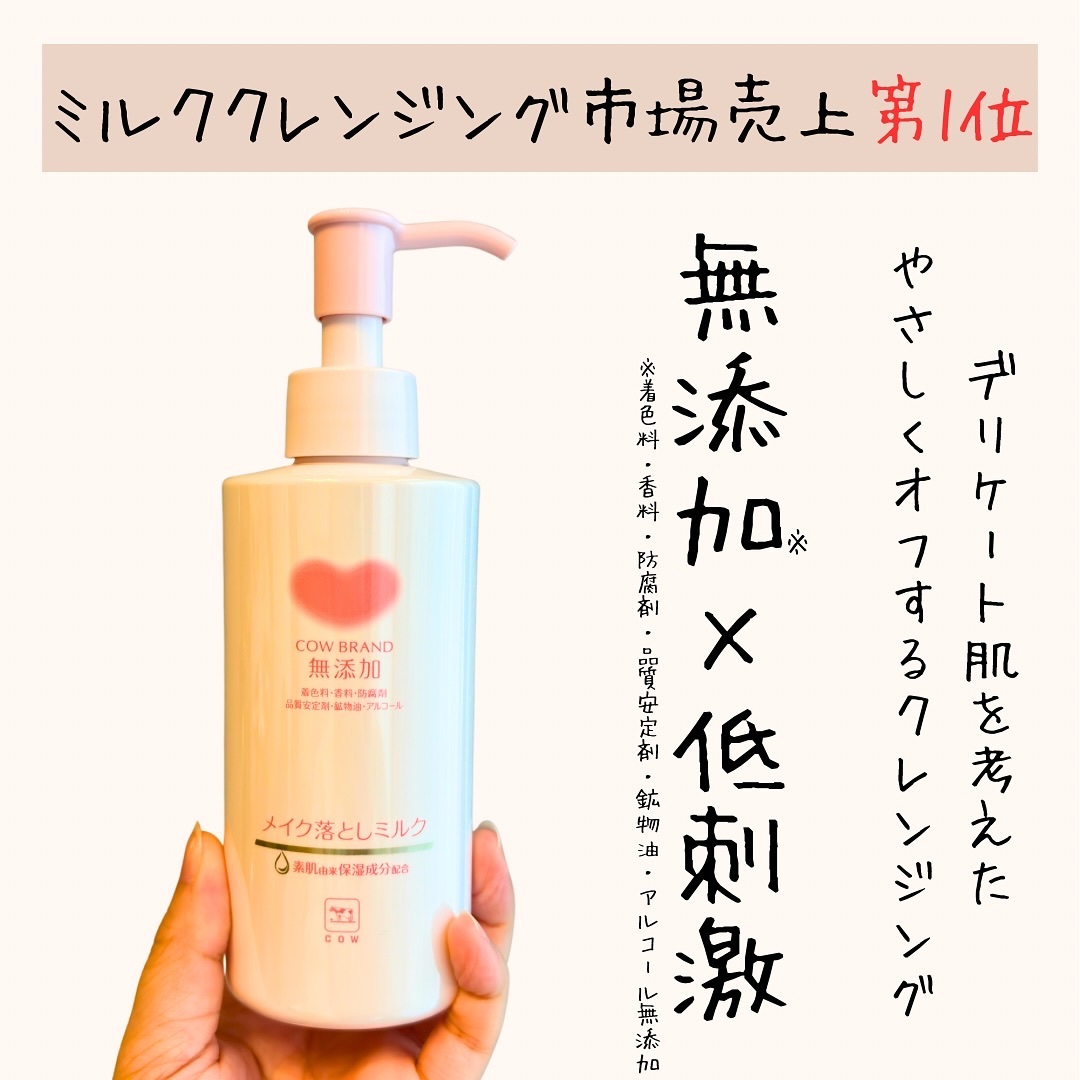 赤箱で有名な牛乳石鹸の会社から出ている「カウブランド無添加」のスキンケアシリーズ。カウブランド無添加メイク落としミルクミルククレンジング市場売上No,1だって✨なめらかなテクスチャーのミルクタイプでやさしい使い心地。美容保湿成分も入ってるし乾...