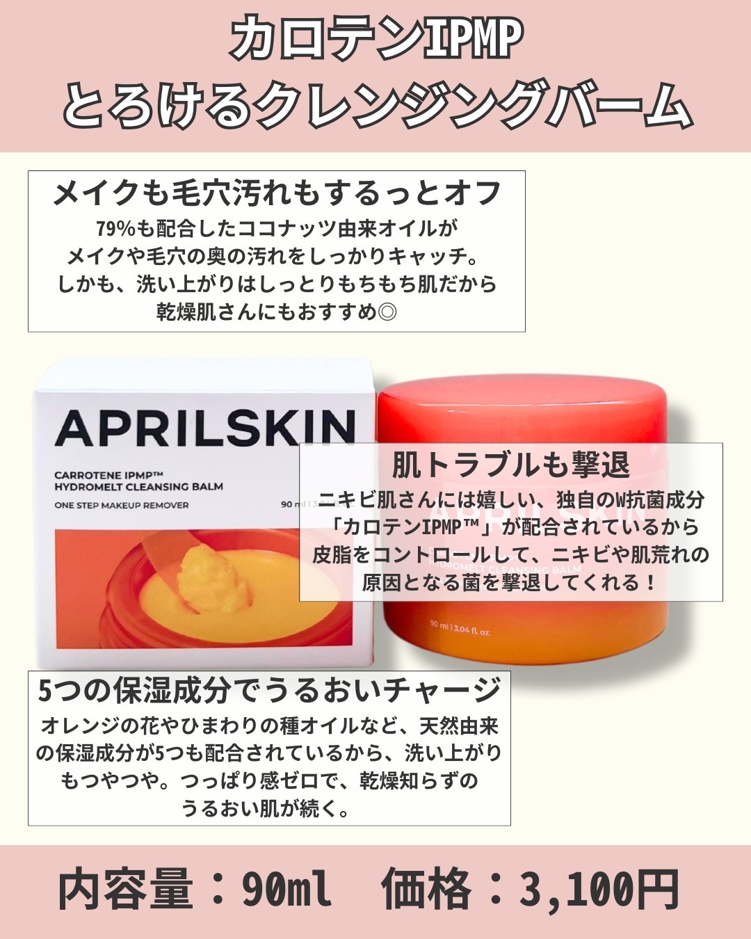 商品詳細情報APRILSKIN カロテンIPMP(TM) とろけるクレンジングバーム