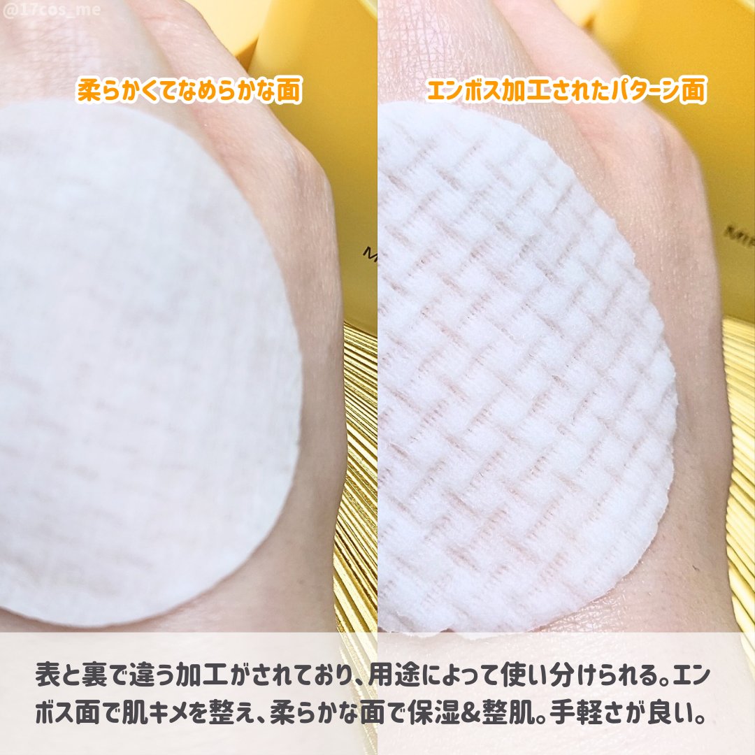 肌のキメ、鎮静、トーンまで同時にケアしてくれるパッド☑︎ エンボス面で顔全体を拭き取るのが気持ちよくて大好き♡ 角質ケアも保湿もできちゃう便利でとってもおすすめ♡